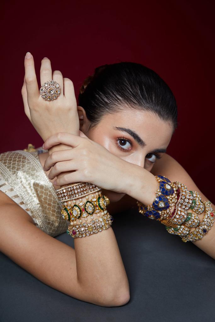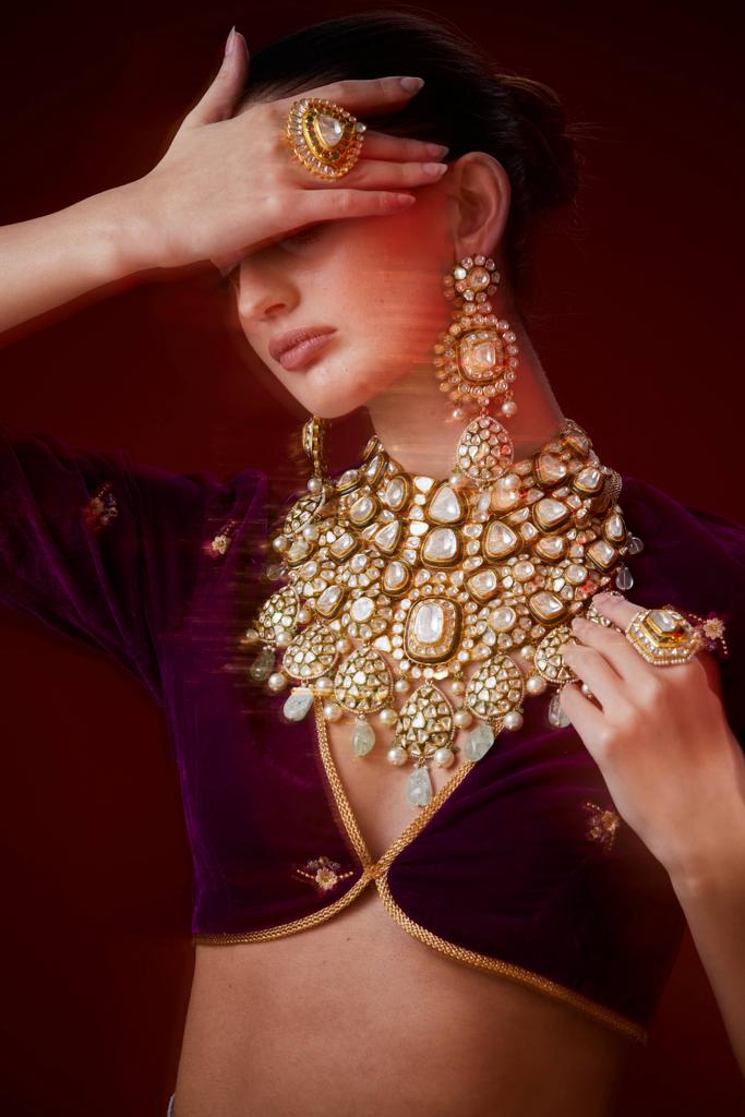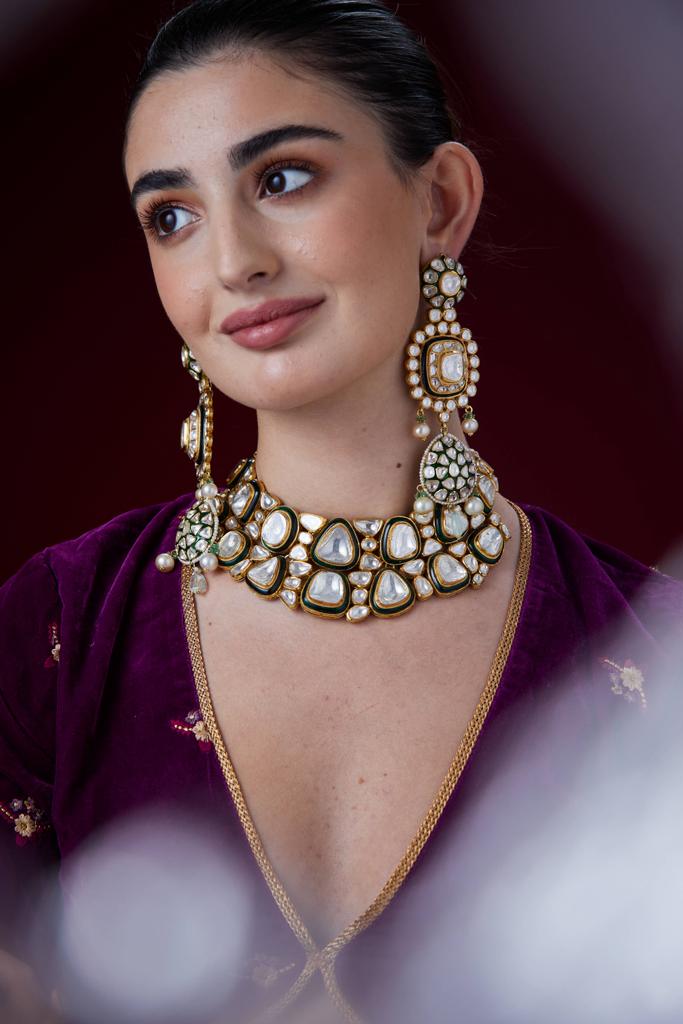 Adorned with the enchanting brilliance of polki, our bridal pieces are more than jewelry—they are chapters in a woman’s story. The intricate details, inspired by the cultural tapestry of our heritage, create a symphony of design that resonates with the modern bride’s refined taste.