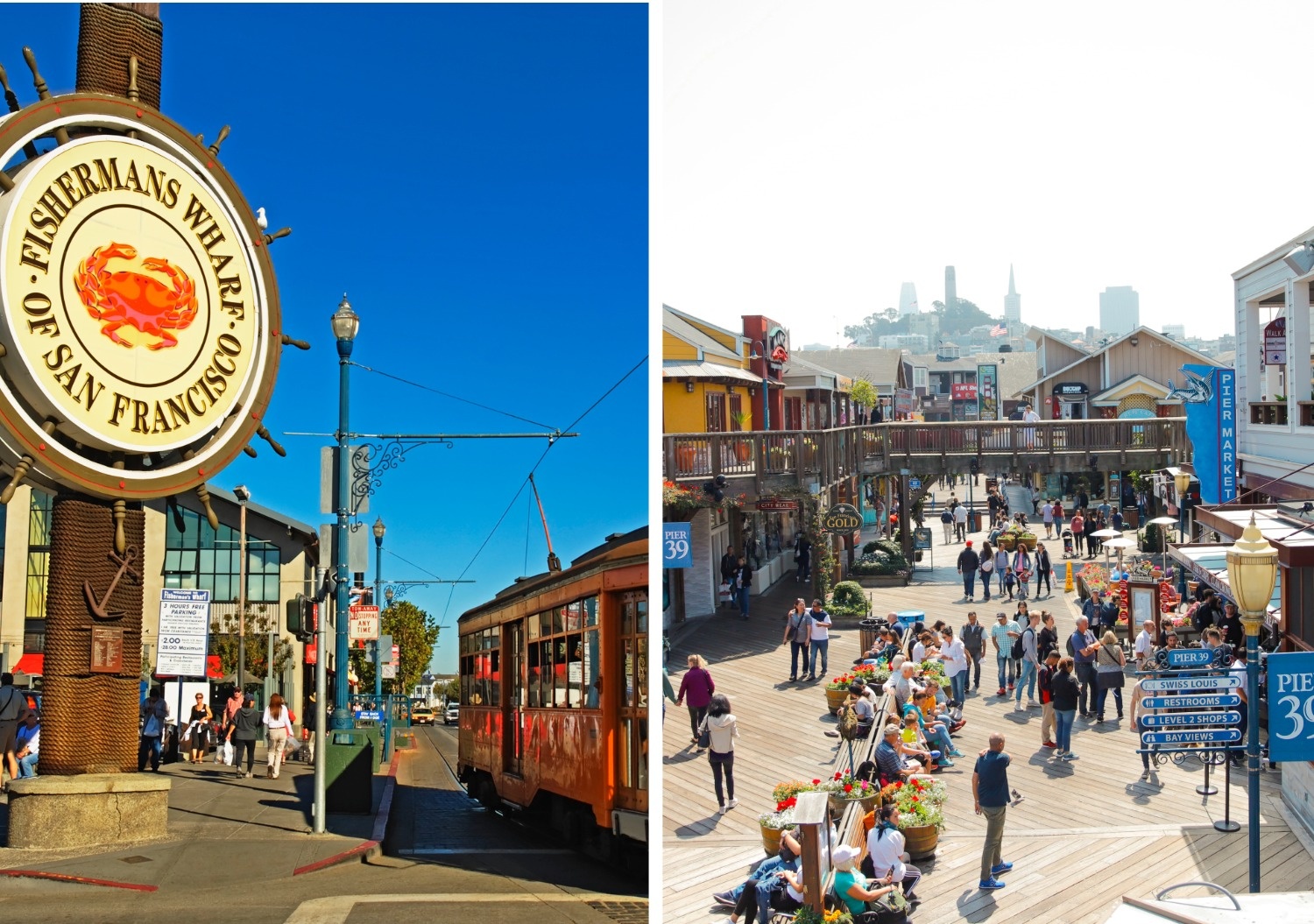 Fisherman’s Wharf on Pier 39– Home to Pier 39, San Francisco’s famous Fisherman’s Wharf, is a vibrant waterfront marketplace and the city’s top-rated tourist attraction year-round. The repurposed wooden pier is dotted with restaurants, souvenir shops, street performers and attractions such as Aquarium of the Bay, The Flyer, SkyStar Observation Wheel, and more. It is also a short walk to attractions such as the Museum of 3D Illusions, the Cartoon Art Museum, Ripley’s Believe it or not! Museum, historic Boudin Bakery, and multiple other food joints.