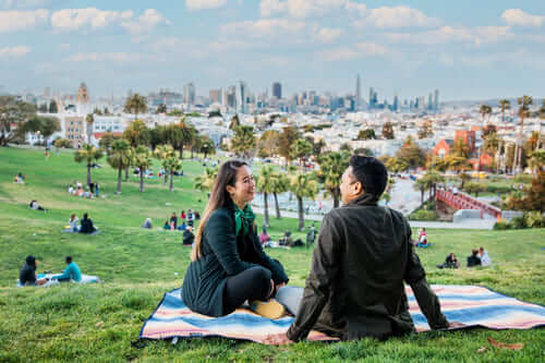 Picnic at Golden Gate or Dolores Park– Arrange an intimate picnic with incredible backdrops at Dolores Park for the perfect place to enjoy sunny afternoons, followed by a walk around the Mission neighbourhood. With nearly 16 acres of grass, you can play, lounge, and people watch, all with a gorgeous view of the city. The Golden Gate Park is another great location for a picnic, featuring scenic spots at the Conservatory of Flowers and outside the California Academy of Sciences.