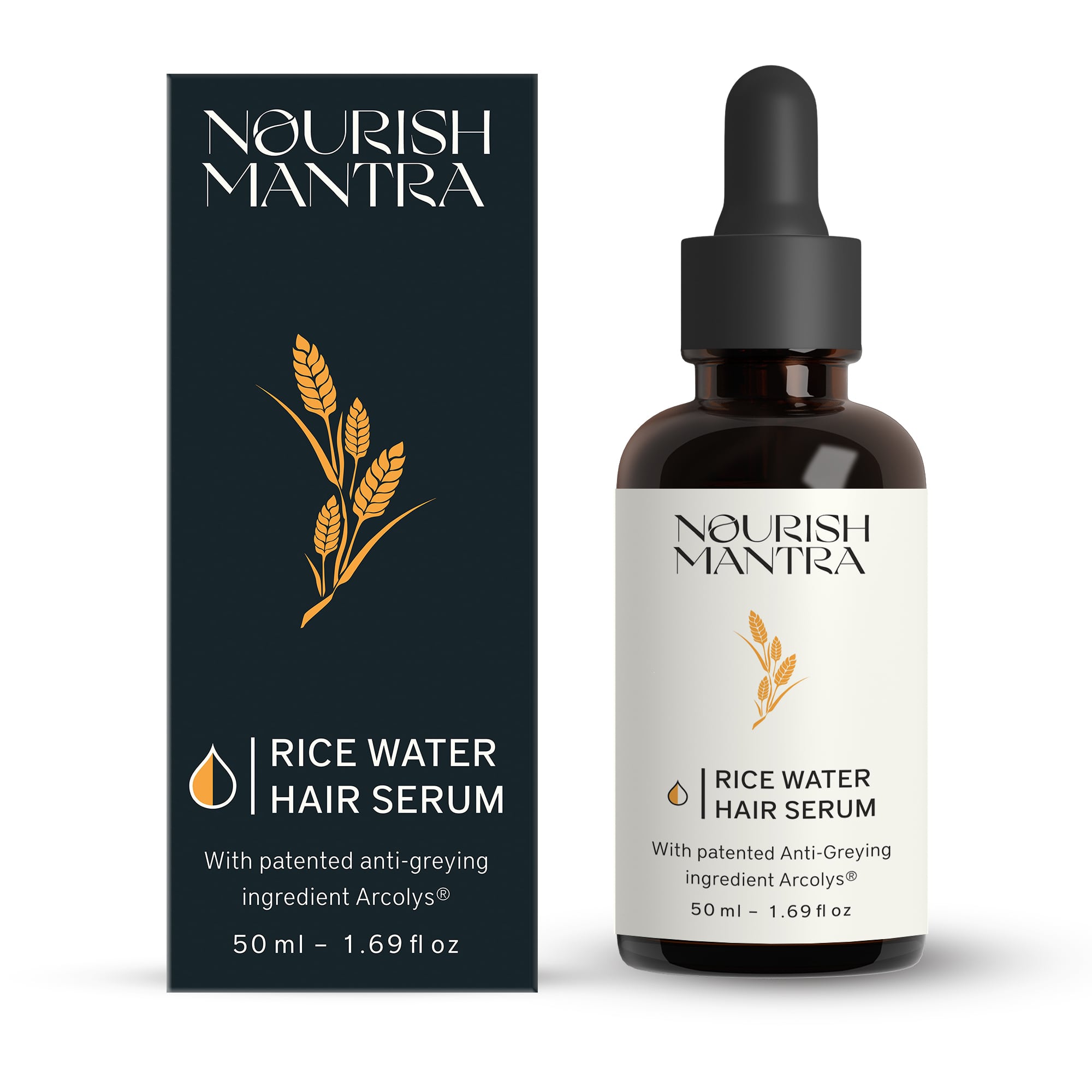 Using fermented rice water brings down the pH level of it, and an element ‘pitera’ in it encourages cell regeneration and promotes the production of melanin for hair. You can try Anti-Graying Rice Water Hair Serum from Nourish Mantra, formulated with clinically proven Rice Water & Arcolys that guarantee results in just 90 days. It feeds the hair with required nutrients and stimulates melanin synthesis restoring your natural hair color.