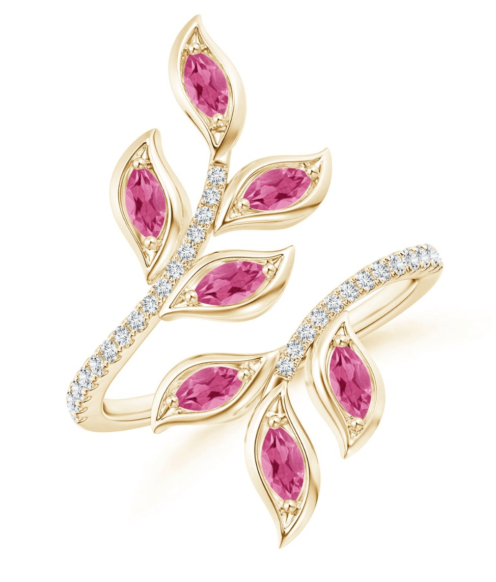 Delicate yet commanding, this pink sapphire ring from Angara is for the woman who leads with confidence and elegance. The marquise cut gemstone radiates femininity, while the olive leaf motif symbolises peace, growth, and resilience. A perfect blend of subtle strength and sophisticated charm, this ring celebrates a woman who embraces her journey with style and grace.