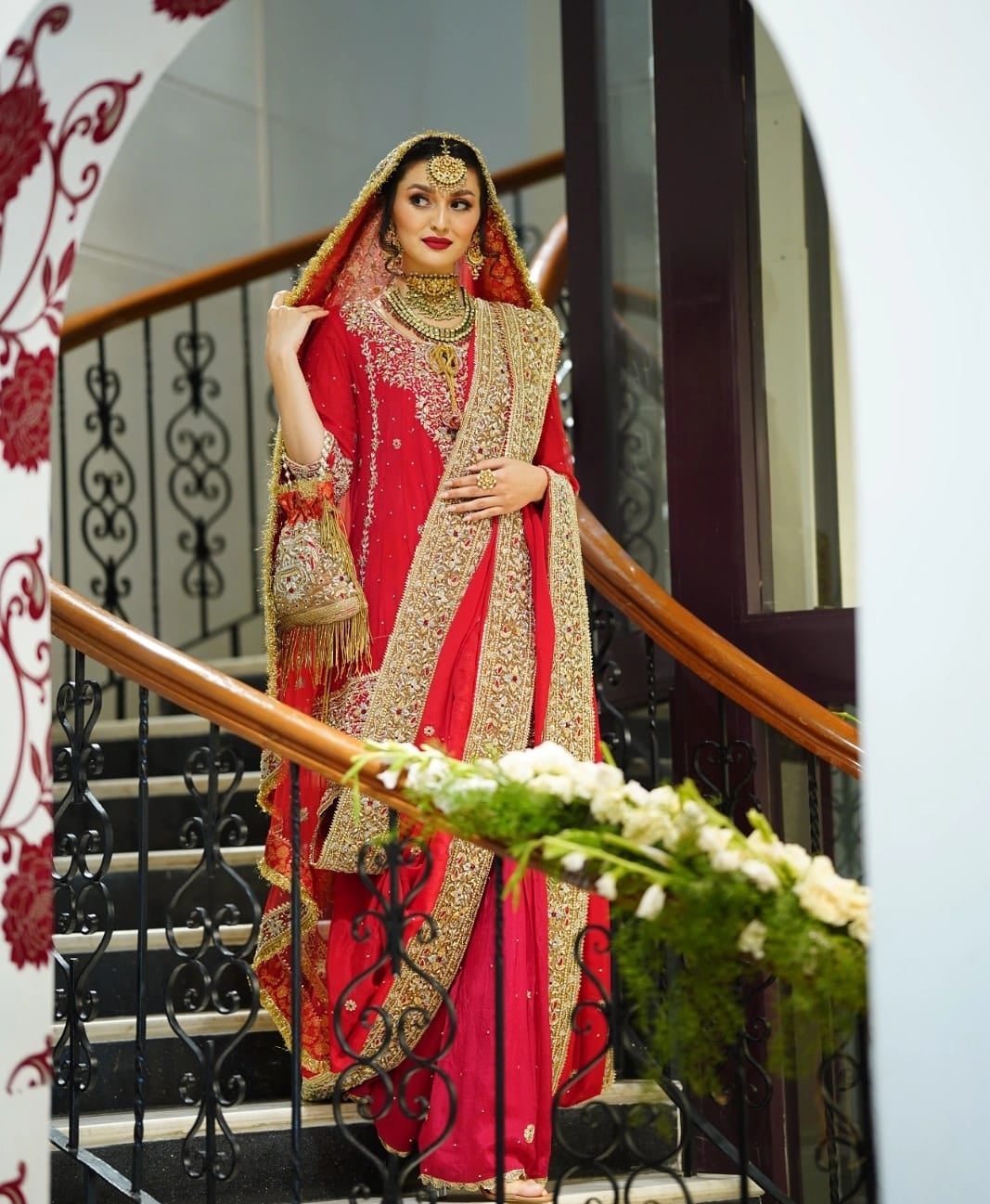 The extraordinary details along the flawless neckline and sleeves region make the outfit an illustration of astounding hand-tailored. Ethereal elegance drawn on the outfit makes it look whimsical and just like a fairytale in itself. Every outfit of Sheenaz-e-arooza has its own NOVEL. A perfect pick for an intimate wedding.A collection celebrating the bride’s moments, beauty, and wholesome spirit to enjoy festive seasons of life. Our garments are the expressions of our brides’ joy and happiness. For us, the most important thing is to be able to capture their dreams and able to weave that magic into our garment designs. It’s truly the grandeur art we use in our garment making that expresses itself without even needing to say a word. We weave the love and magic our brides envisage on the most joyous moment of their life. Hope you enjoy the journey as much as we enjoyed creating it.
