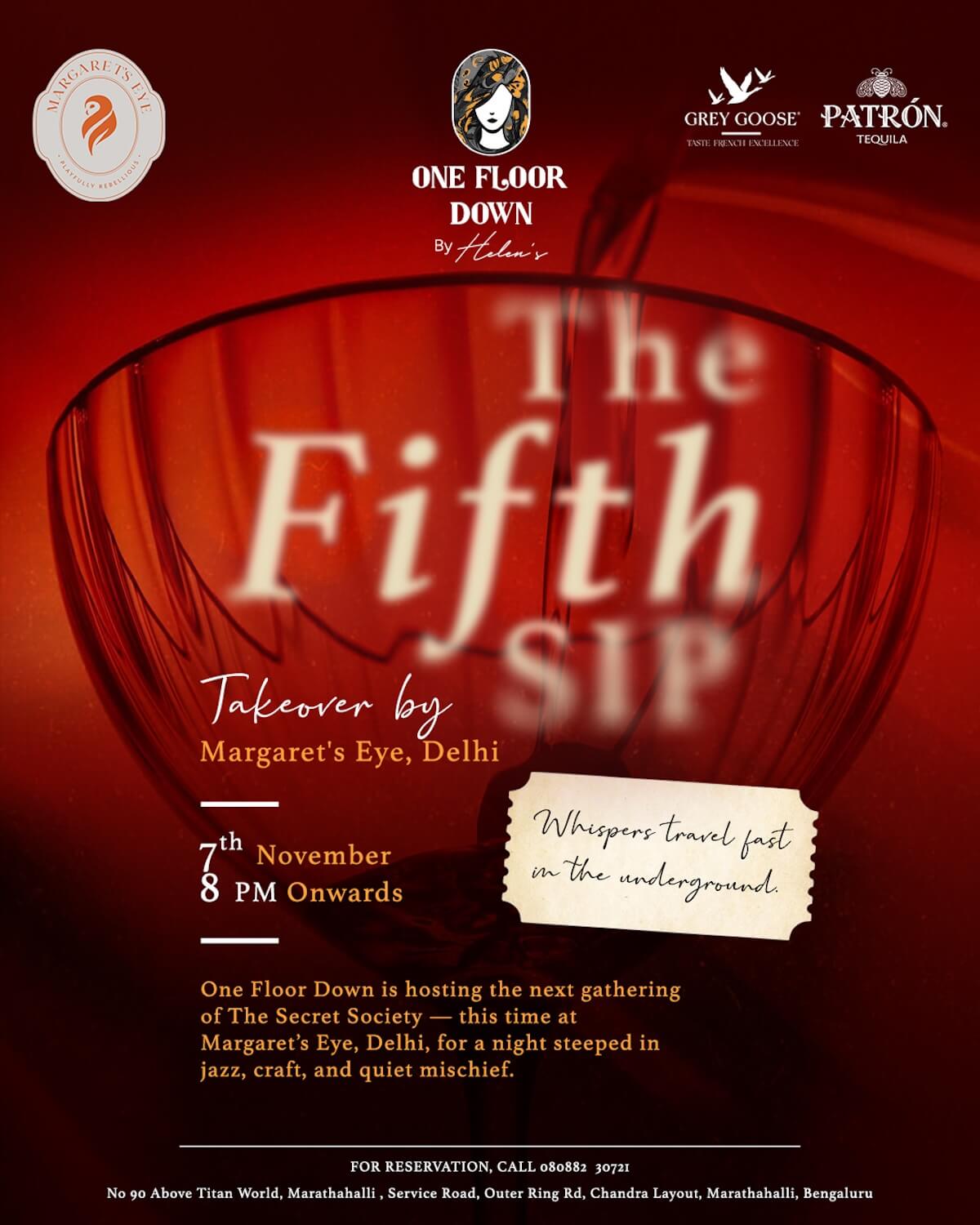 This November, the Secret Society returns. And this time, it brings with it Margaret’s Eye – the India’s first women led white spirit bar that has built a reputation for cocktails that read like poems and experiences. On 7th November, Margaret’s Eye travels south to take over One Floor Down by Helen’s, Bengaluru, for a night that promises jazz, craft spirits, and a touch of after-hours intrigue.