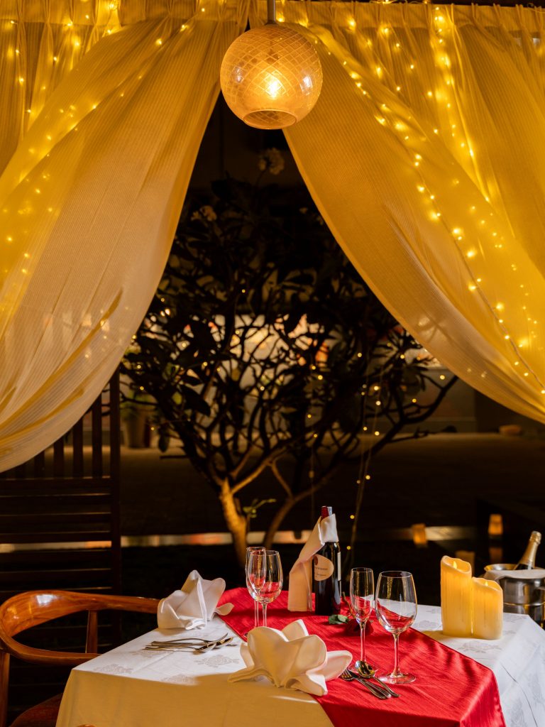 For those seeking an exclusive, intimate celebration, the beautifully set Cabana offers a private dining experience beneath the stars. A candlelit table, framed by the enchanting evening sky, sets the stage for a magical evening. Guests will be treated to a gourmet journey curated by the Executive Chef and his team, with a selection of dishes that blend exquisite flavors and culinary artistry. Paired with handcrafted cocktails and mocktails by the Bar Manager, the night promises to be a celebration of love in its purest form.