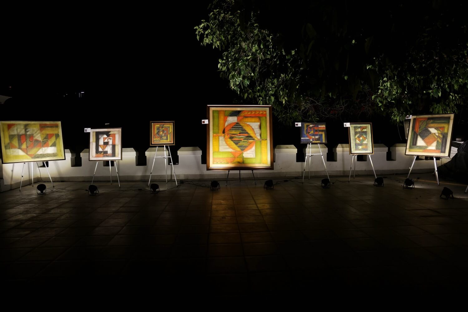 In contrast, Akkitham Narayanan’s contemplative abstractions unfolded through a visual language informed by sacred geometry and metaphysical thought. His canvases, constructed through elemental forms and measured spatial relationships, introduced moments of stillness and introspection within the evening’s discourse. Akkitham Narayanan provided his gracious presence at the event, allowing guests a rare opportunity to interact with the senior contemporary artist and gain insight into his philosophy and practice.