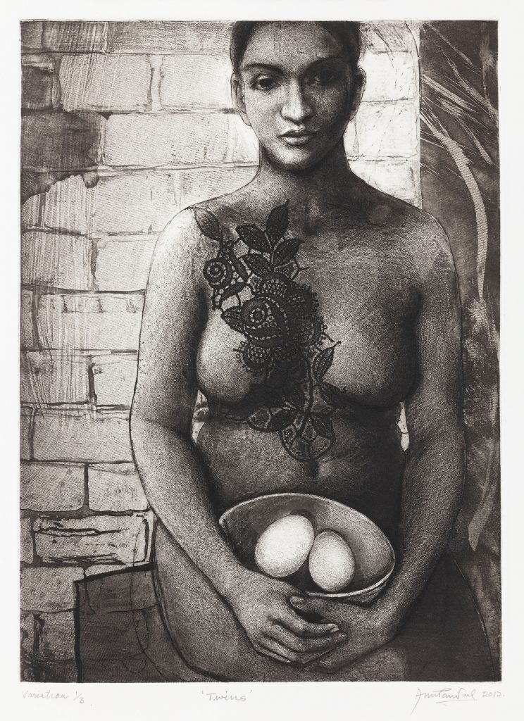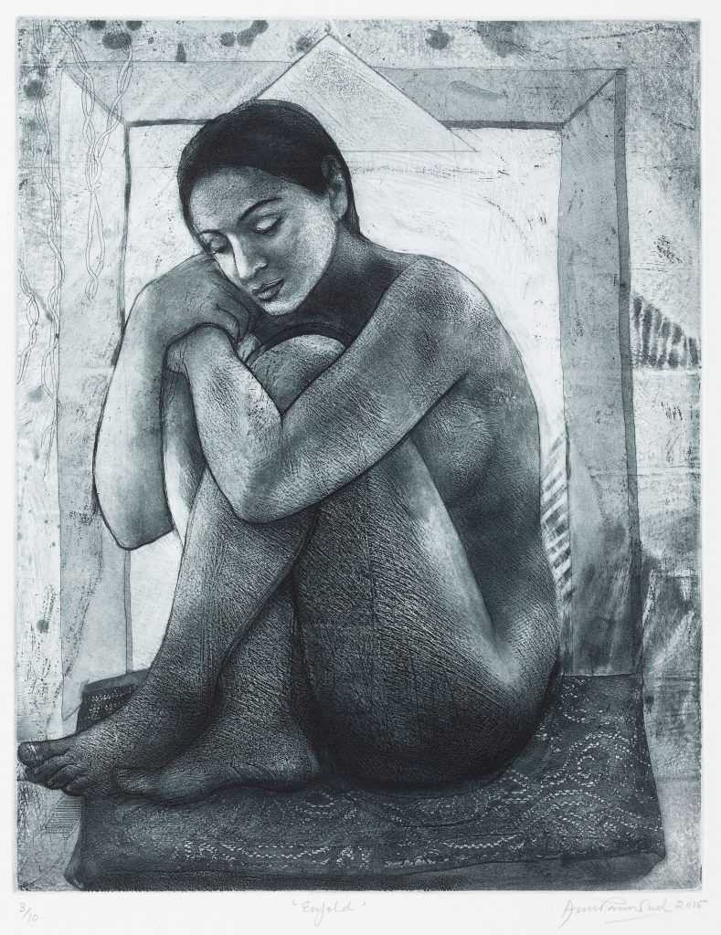 This exhibition that spans two distinct periods of my practice—the early 1970s and the more recent 2010s—comes at a transformative time when the rigours of printmaking are making it difficult for me to continue as a printmaker. It is, therefore, a good time to look back to see how the meticulous learning of printmaking techniques, the choice and use of materials, and the social environment from which I derived my images and compositions, have shaped my practice of six decades. It is a time to reflect on how the concerns or an urban society, as experienced by me and manifested in my printmaking, have changed over time in any meaningful manner. For only that ability to be understood beyond the immediacies of the time in which they were composed can truly be a measure of an artist’s success.” says Anupam Sud Her works depict treatment of the human body-raw, nuanced, and deeply empathetic-emerges as a central motif, inviting viewers to engage with universal themes of vulnerability, resilience, and self-reflection.