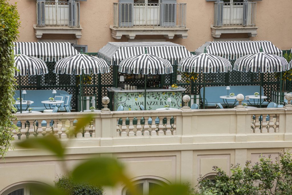 A secret garden nestled within a secret garden – the Aquazzura Bar enhances the essence of La Dolce Vita in the historic Hotel de Russie’s hidden courtyard. Once inside the hotel’s majestic entrance, guests are led to an enchanting, flourishing oasis that unfolds like the pages of an exciting storybook, invisible from the street yet captivating in its refined beauty.