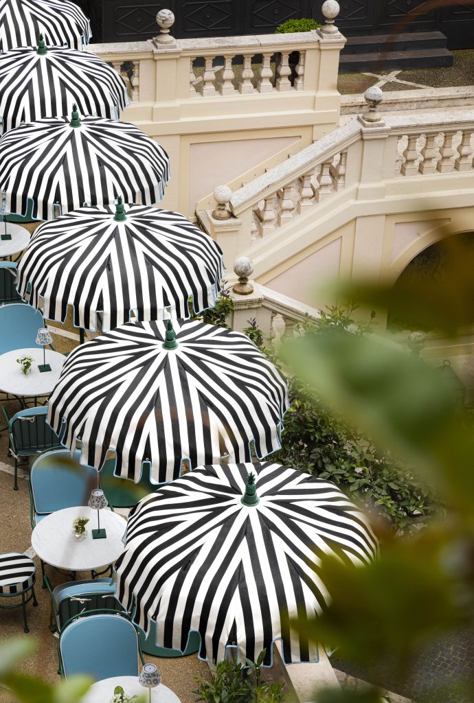 Bespoke Portuguese tiles, hand-painted with delicate lemon motifs, adorn the bar, paying homage to Italy’s colorful citrus groves. Conceived by design studio Casa do Passadiço, the bar features elegant metal outdoor furniture with tufted chairs and comfortable sofas. Green trelliswork and lemon trees in striped planters frame the area, creating an enchanting garden atmosphere that complements the Hotel de Russie’s famous courtyard gardens rising dramatically behind the bar.