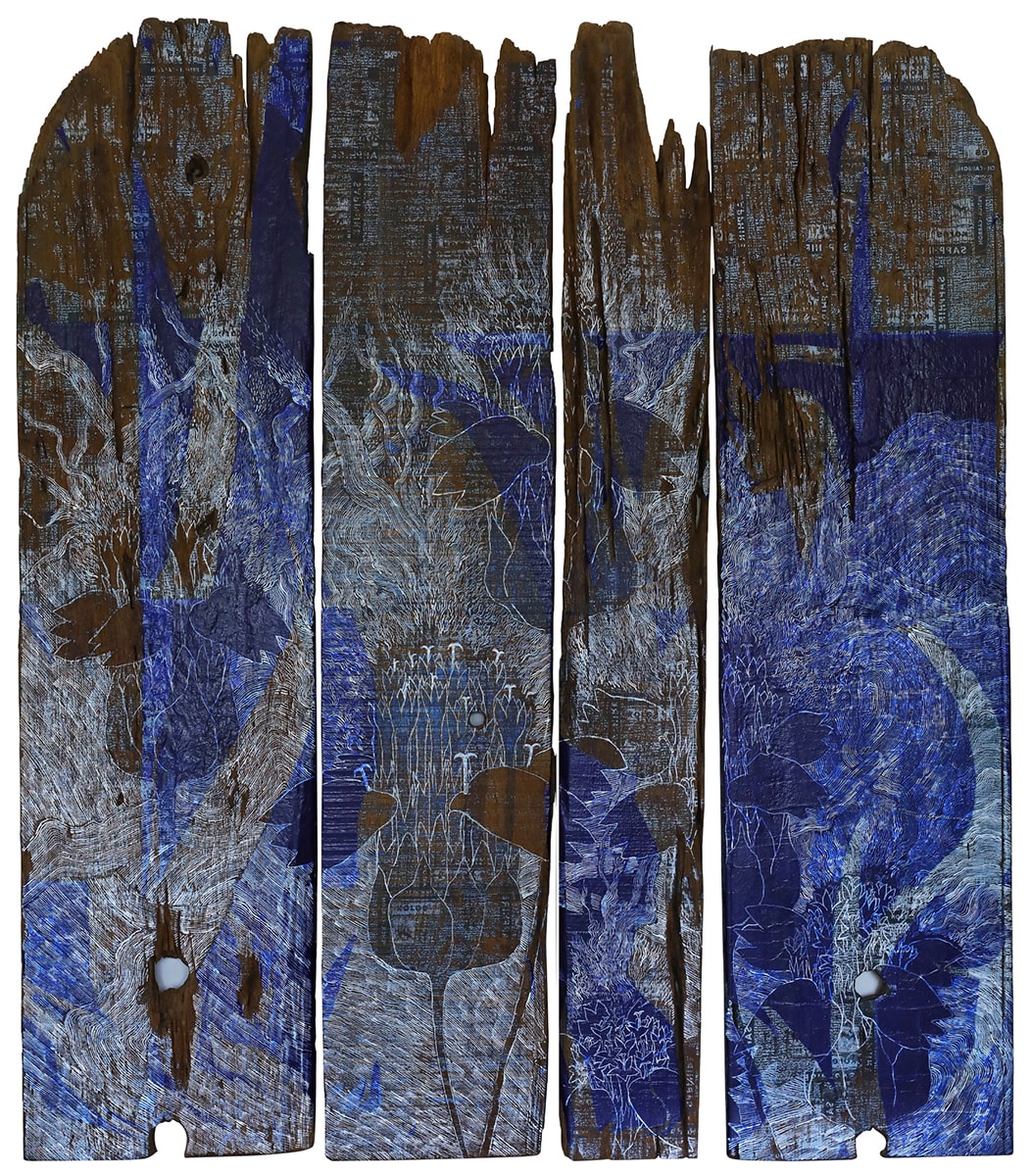 With growing global attention on climate change and ecological concerns, By Nature’s Force resonates deeply with contemporary conversations on sustainability. Vijay Pichumani, renowned for his intricate woodcut prints and mixed media works, presents a thought-provoking body of work reflecting the delicate balance of nature and the human impact on the environment. His creations are a poignant reminder of our shared responsibility towards the planet.