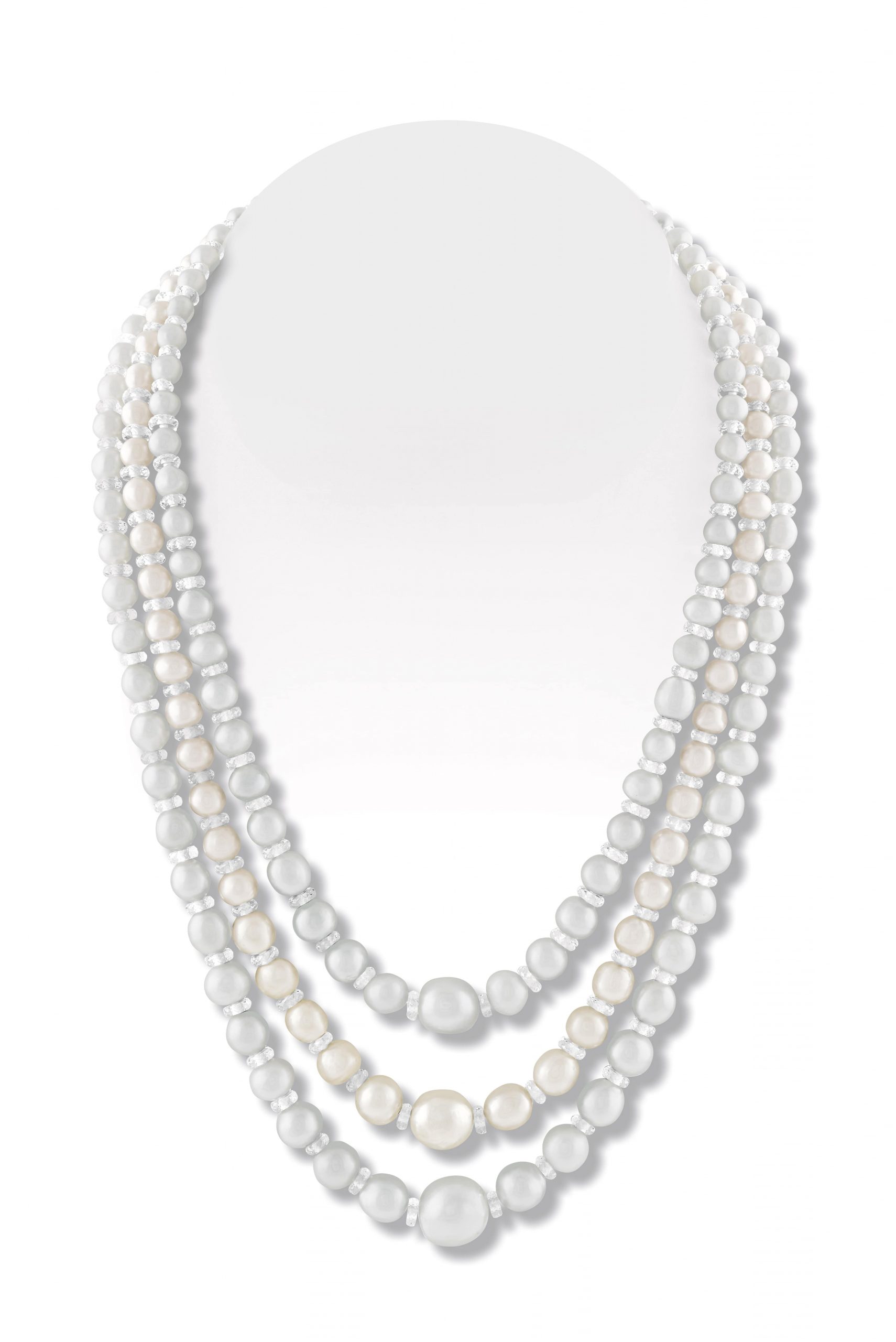 A fine selection of natural pearls jewellery will also be showcased. Lot no. 121, a stunning three-row natural pearl necklace interspaced with faceted crystal discs and a clasp set with old cut diamonds will be offered with an estimate of INR 5,20, 00,000 – 6, 00,00,000. ( Natural Pearl weight : 2485.73 chau / 181 pcs). This lot comes with a SSEF (Schweizerische Stiftung für Edelstein Forschung) certification report.