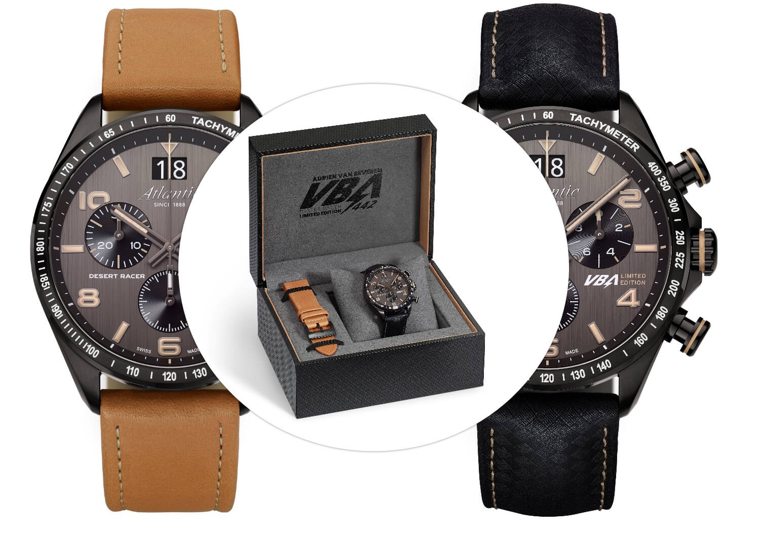 The Desert Racer VBA 442 is inspired by Adrien Van Beveren, one of rally-raid motorsport’s most respected athletes. Born in Northern France, he rose to prominence with three consecutive victories at the demanding sand races of Le Touquet before taking on the world’s toughest rally stages, including the Dakar Rally. Recognised by his iconic race number 442, Adrien embodies discipline, resilience, and a relentless drive to push limits—values that reflect Atlantic’s watchmaking philosophy.