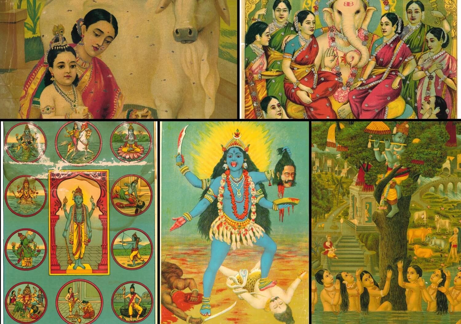 Expanding beyond a single press, the exhibition situates these works within a broader network of regional print traditions, from Calcutta to Western India. Through a comparative display of recurring divine figures, the exhibition reveals how core attributes like the lotus, veena, conch, flute, remain constant even as form, colour, and composition evolve in response to technological advancements, market forces, and regional aesthetics.
