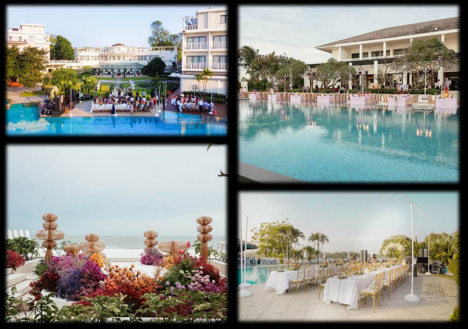 Personalized menus are served at Le Parfum restaurant (up to 200 guests) with soothing music, followed by celebrations on the Bar Terrace. Poolside dinners can serve up to 300 guests. Elegant decor, including bright floral arrangements, unique signage and a bouquet-ringed stage, ensure a sophisticated and memorable ambiance. Full-venue bookings are available for a fully private experience.