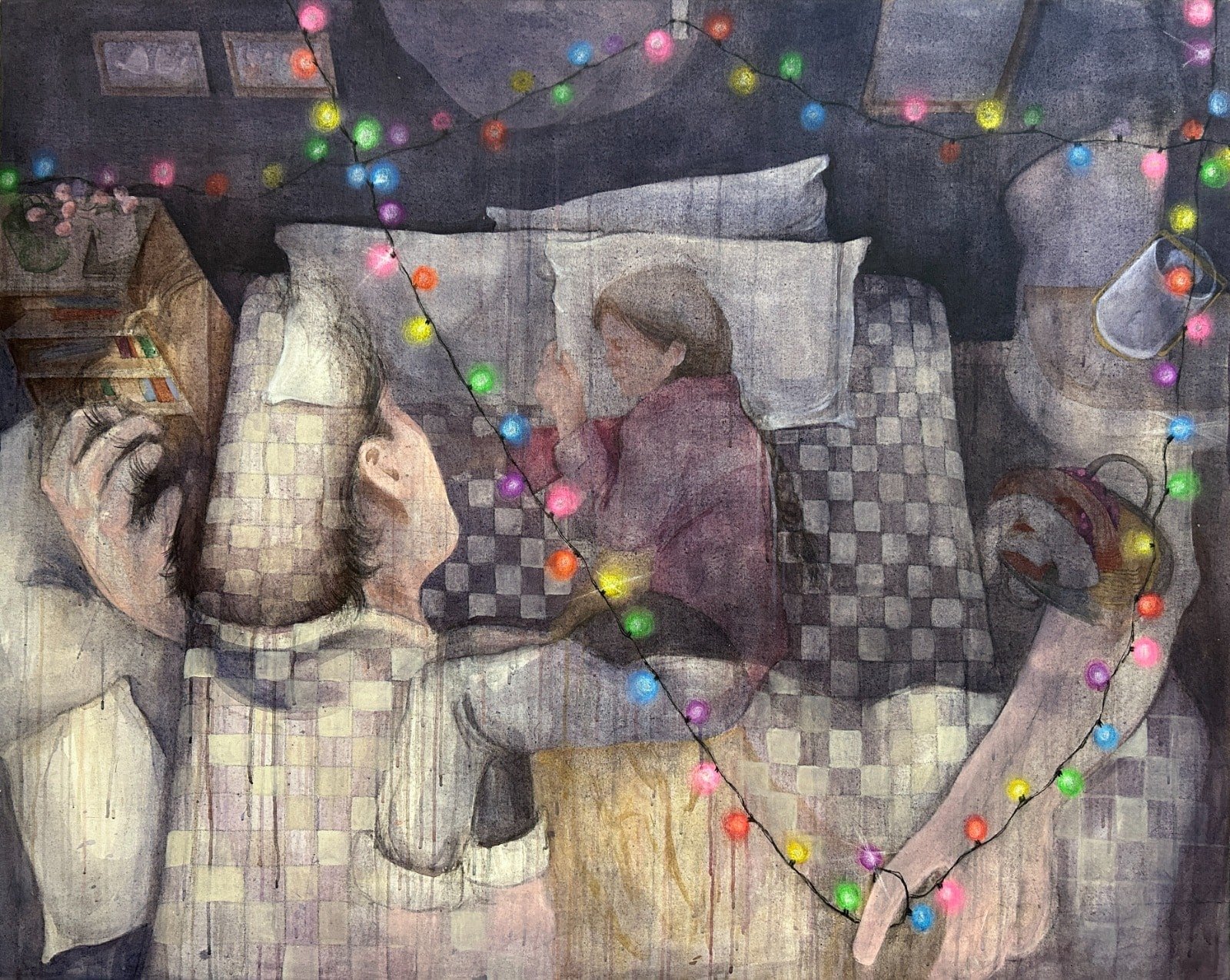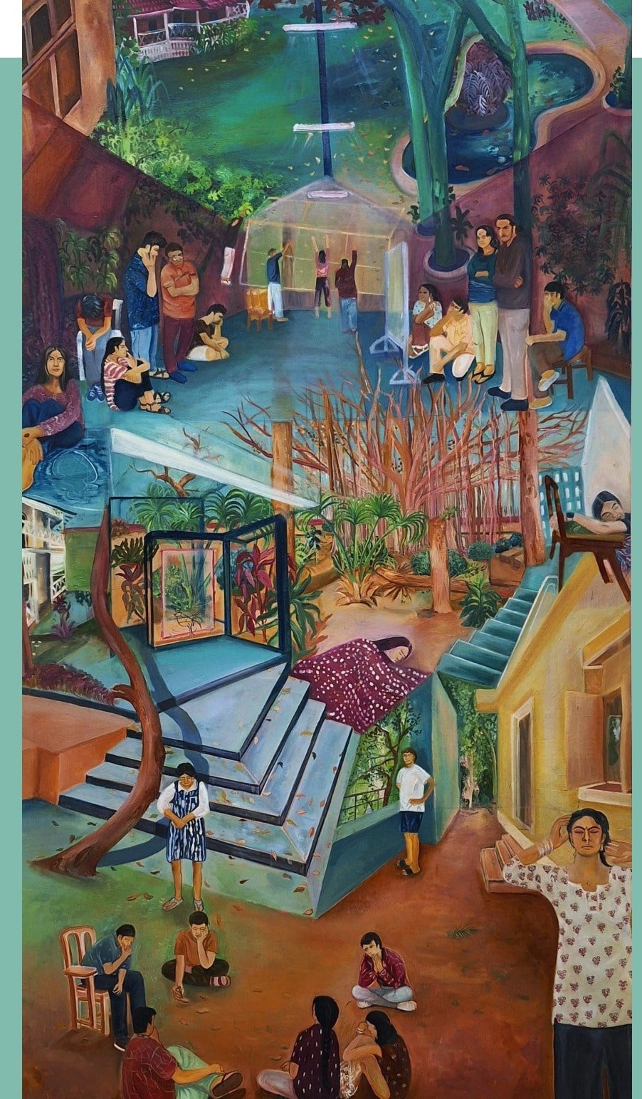 One may be amazed at the array of styles, which these young artists have encapsulated and innovated from the past as well as the present. From Shubhakar Tadi’s stunning hyperrealist canvases to Sriya Ramani and Nandhini Srikumar’s descriptive format that plug into the rich ethos of Baroda’s Narrative School Painting, while the abstracts geometry of Harisha Chennagod to the expressive abstractionist mixed media works of Damyanti Debnath and Bansi Dholakiya.