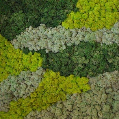 Since the ‘moss’ idea was born about 15 years ago, it makes use of cladonia stellaris, a moss collected in the woods of Northern Europe, which is now widely used in interior design.