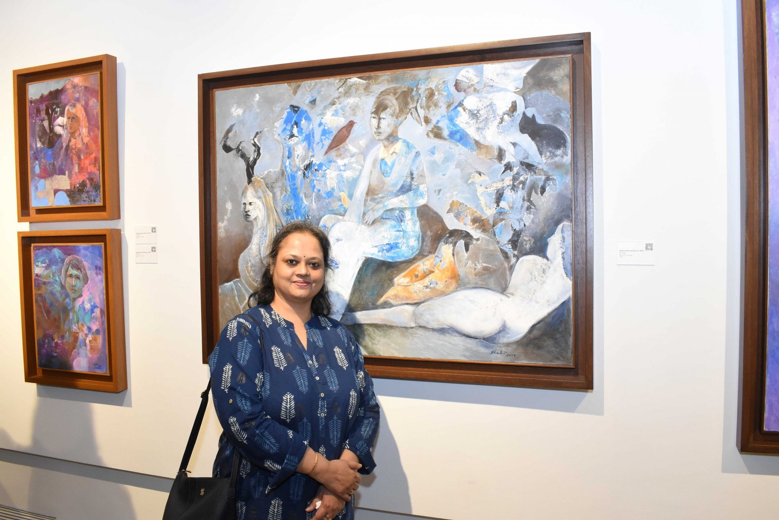 New Delhi, The preview evening of “Beyond Myth & Metaphor”, a solo exhibition by artist Shabir Hussain Santosh, was held at Shridharani Gallery, Triveni Kala Sangam, and was met with warm appreciation from art patrons, collectors, and members of the cultural fraternity. Hosted by Sanchit Art, the preview offered guests an early glimpse into Santosh’s latest body of work—deeply reflective canvases inspired by mythology, memory, and inner experience.