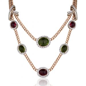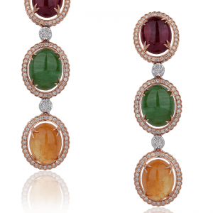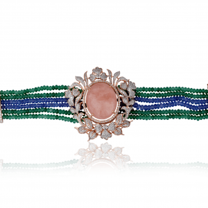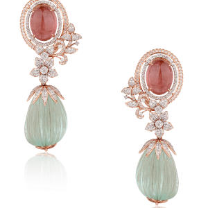 The collection showcases elaborate necklaces and chokers, adorned with coloured stones, symbolizing prosperity and marital bliss. Complementing these are statement rings, crafted to perfection, and elegant earrings, embellished with pearls and gemstones for a regal festive touch. The highlight of the collection lies in the exquisite bracelets and mangtika, which celebrate the joyous spirit of Teej through exquisite detailing.