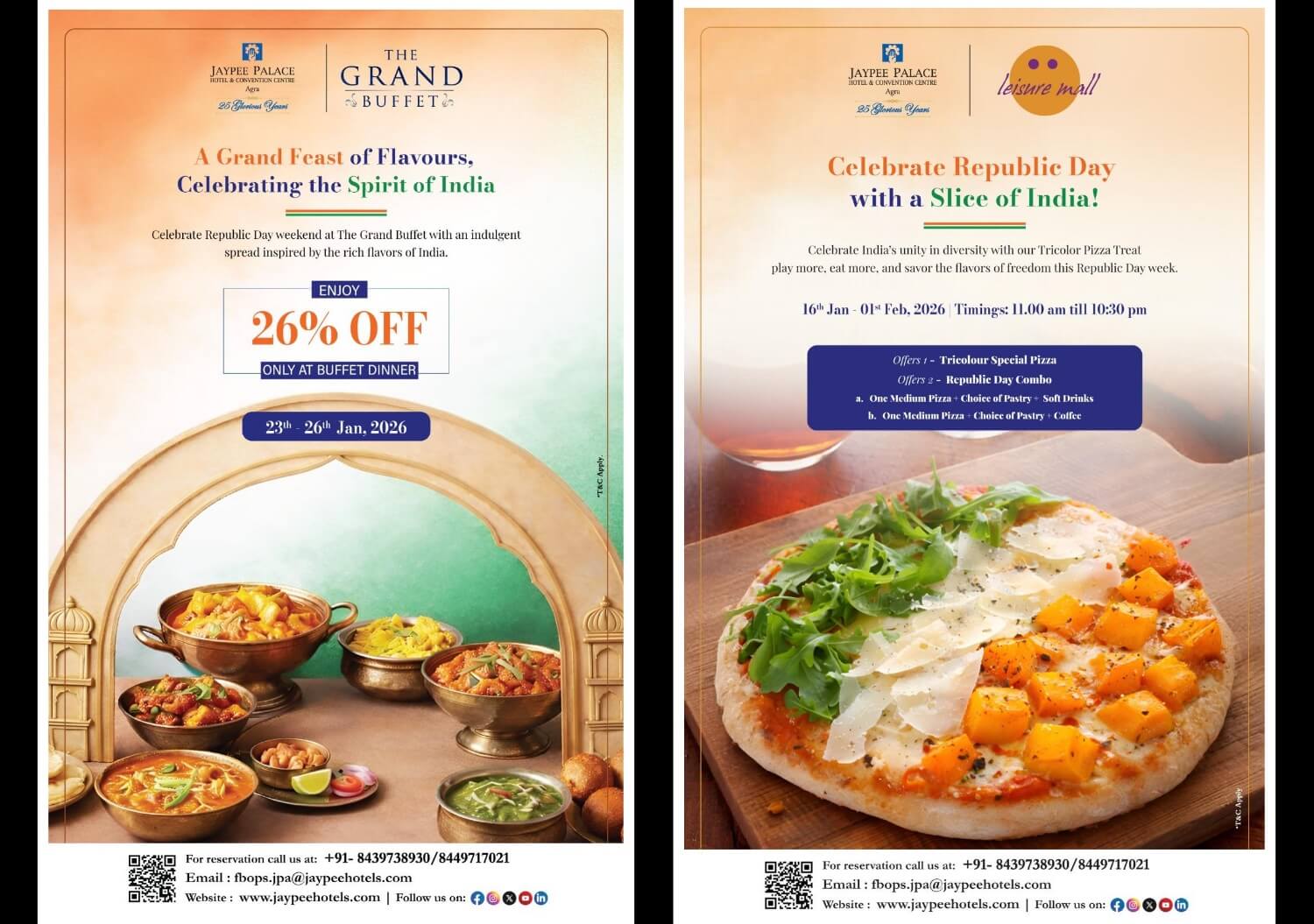Jaypee Palace Hotel & Convention Centre, Agra invites everyone to celebrate the spirit of the nation with a specially curated Republic Day Tricolour Pizza Festival,an experience that blends patriotic warmth with indulgent culinary artistry in one of Agra’s most iconic hospitality destinations.