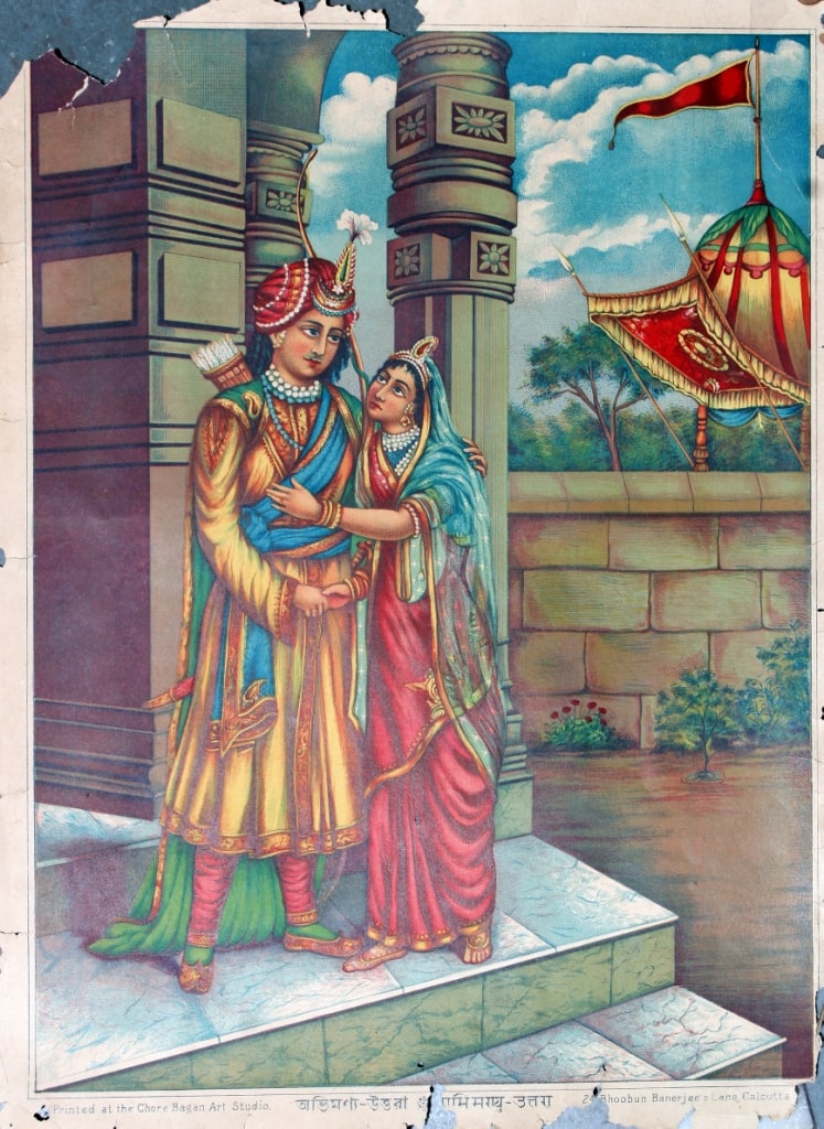The exhibition features lithographs from renowned studios like Chore Bagan Art Studio, Kansaripara Art Studio, and K.A. Studio Litho Press. These artworks are more than just relics of India’s past; they are vivid reminders of a time when art, religion, and technology merged to shape collective consciousness. Depicting timeless mythological figures such as Abhimanyu, Beenapani (Goddess Saraswati), Jagaddhatri, and Kalighater Sri Sri Kali Mata (Goddess Kali from the famous Kalighat Temple), these prints offer a rare glimpse into a world where devotion and artistry were deeply intertwined.