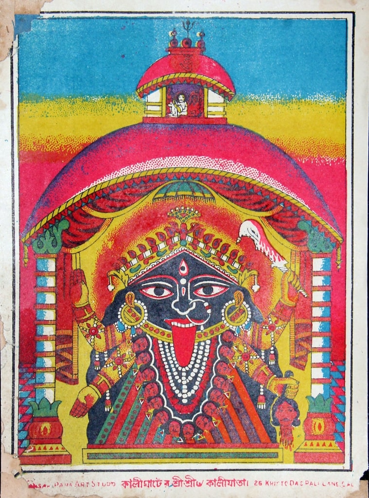 The rise of Chitpur Lithographs coincided with the Indian Renaissance, particularly in Bengal, a period marked by a renewed interest in indigenous art, culture, and spirituality. Lithography, introduced to India in the early 19th century, revolutionized the production and dissemination of images. Unlike traditional hand-painted religious icons, lithography allowed for mass production, making religious imagery accessible to a broader audience. The Chitpur neighborhood in Kolkata became a hub for this printing revolution, attracting artists and entrepreneurs eager to meet the growing demand for affordable religious images.