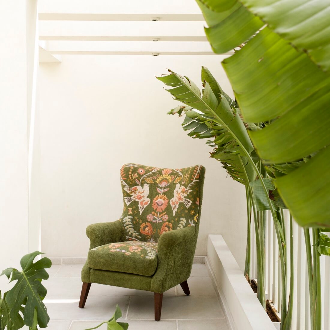 Description: Blending comfort with artistry, The Sharmila Lounge Chair is crafted for deep relaxation. Hand-embroidered floral motifs adorn refreshing green bouclé fabric, evoking natural calm for cozy festive moments. Supported by sturdy oakwood legs and an ergonomic structure, this elegant statement chair celebrates craftsmanship, design and refined comfort.
