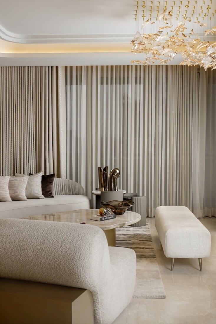 Description: RR Décor unveils the Acantha Collection by Arezzo, where sheer drapes in a Pantone-inspired neutral palette bring calm elegance to interiors. Drawing from Mughal architecture and miniature art, the embroidered fabrics softly diffuse light, creating serene, airy spaces. Lightweight textures and refined detailing balance artistry with functionality, making these drapes ideal for both modern and classic settings that celebrate timeless, contemporary luxury.