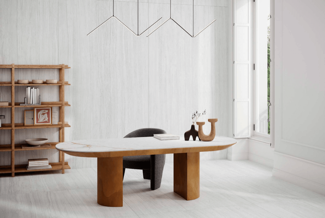 Description: Inspired by the soft elegance of natural limestone, Calista Silk is reimagined through a Pantone-inspired neutral palette that radiates warmth and understated sophistication. Delicate veining and a velvety matte surface create a serene, soft-touch appeal, ideal for calm and inviting interiors. Available in 3 mm, 6 mm, 12 mm, and 20 mm thicknesses, it is offered in Décor Polished and Ultra Soft finishes, seamlessly balancing refined aesthetics with versatile functionality.