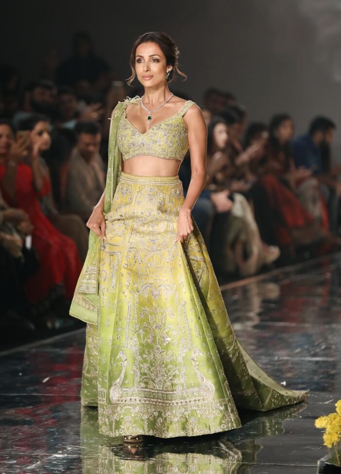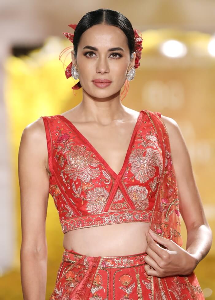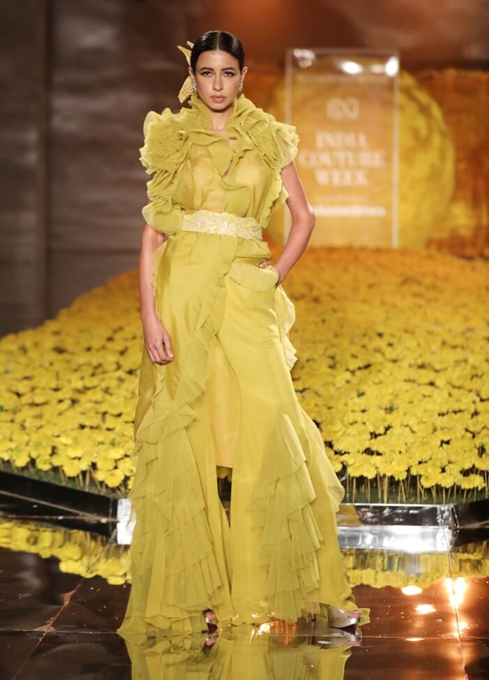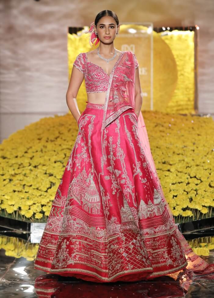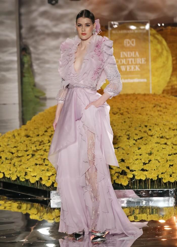 The 2019 couture shown on the ramp was based on Varanasi. It is a collection that is eccentric and opulent, and reflects the culture found in the ghats of Varanasi and the traditions of India. “The collection brings out Indian heritage and culture through colours. We have used seven colors in the collection. Embroidery techniques have been contemporized and we have used nakshi, dabka, sequins, Swarovski crystals, ghungroos, feathers, raffia and lace to make our garments look exclusive and extravagant.”