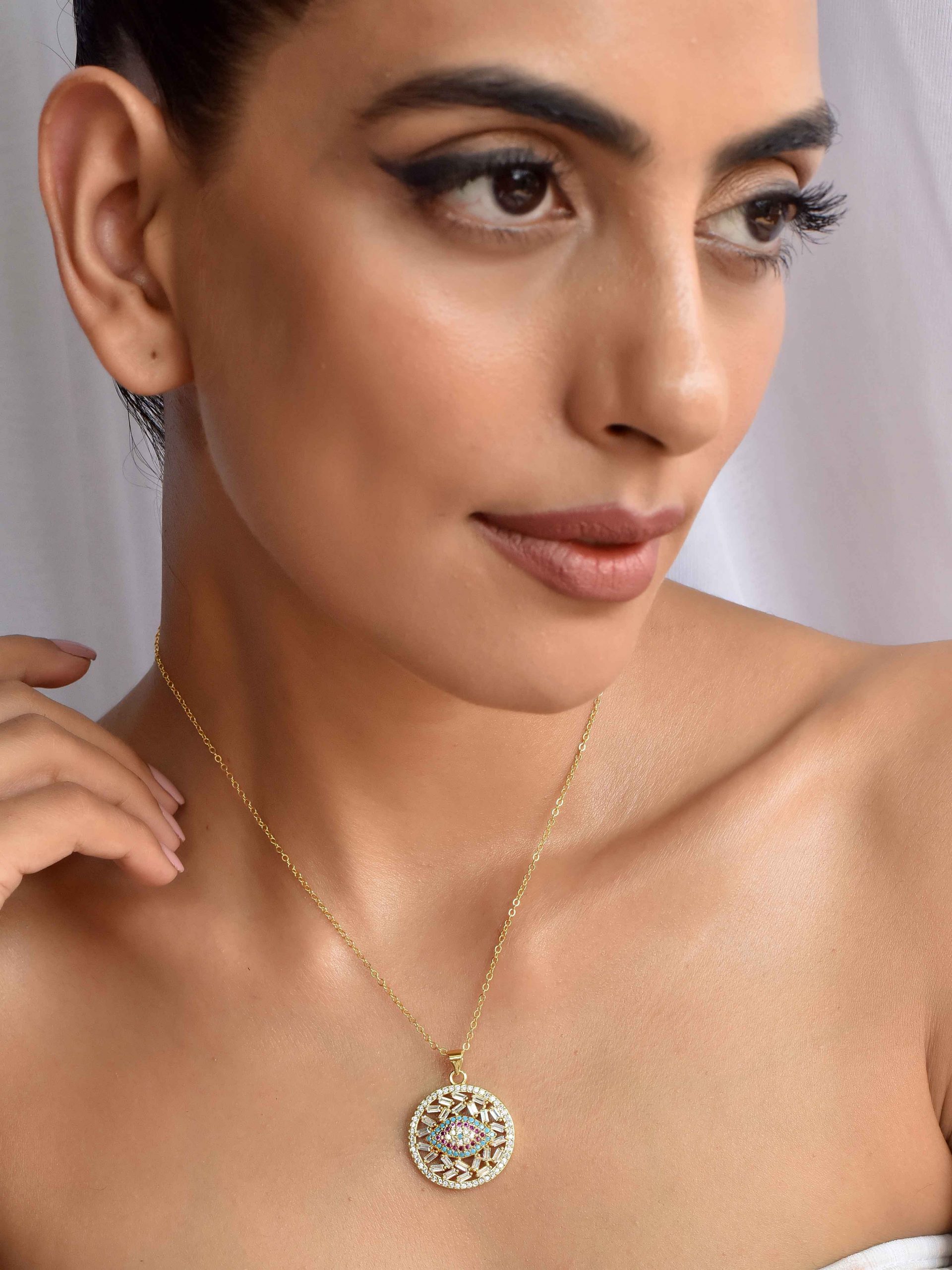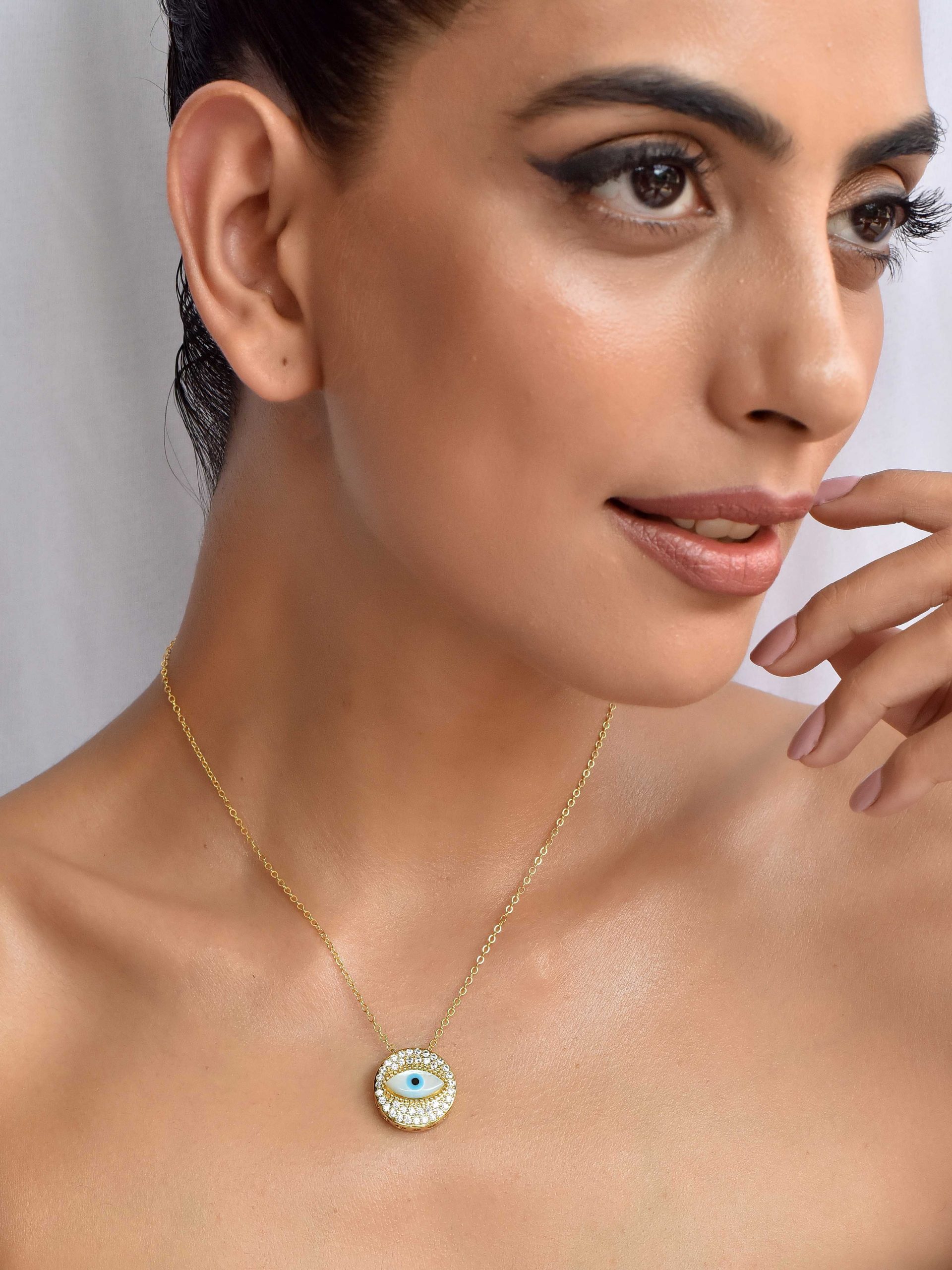 Amyra Round Gold Plated Evil Eye Necklace: Price: INR 950