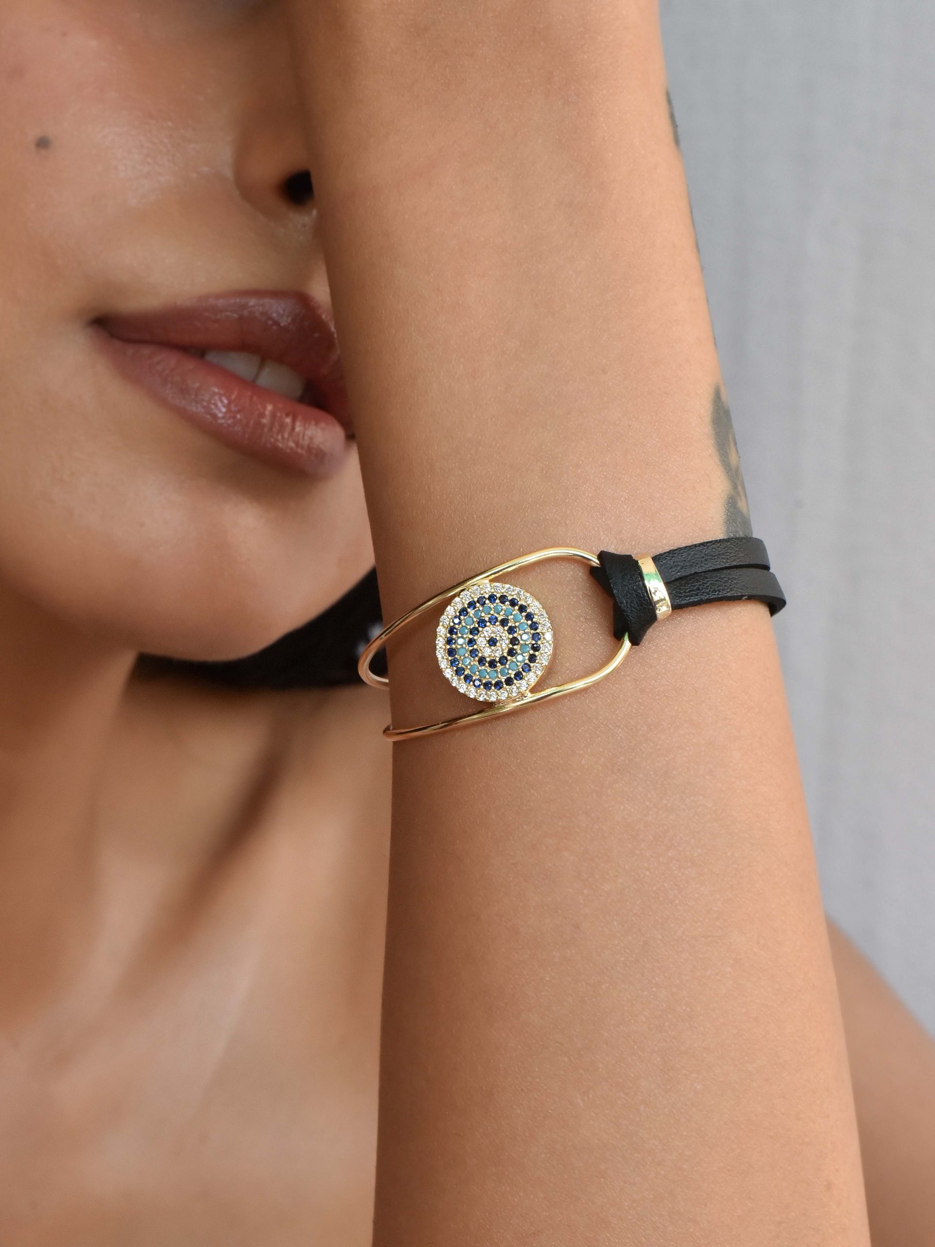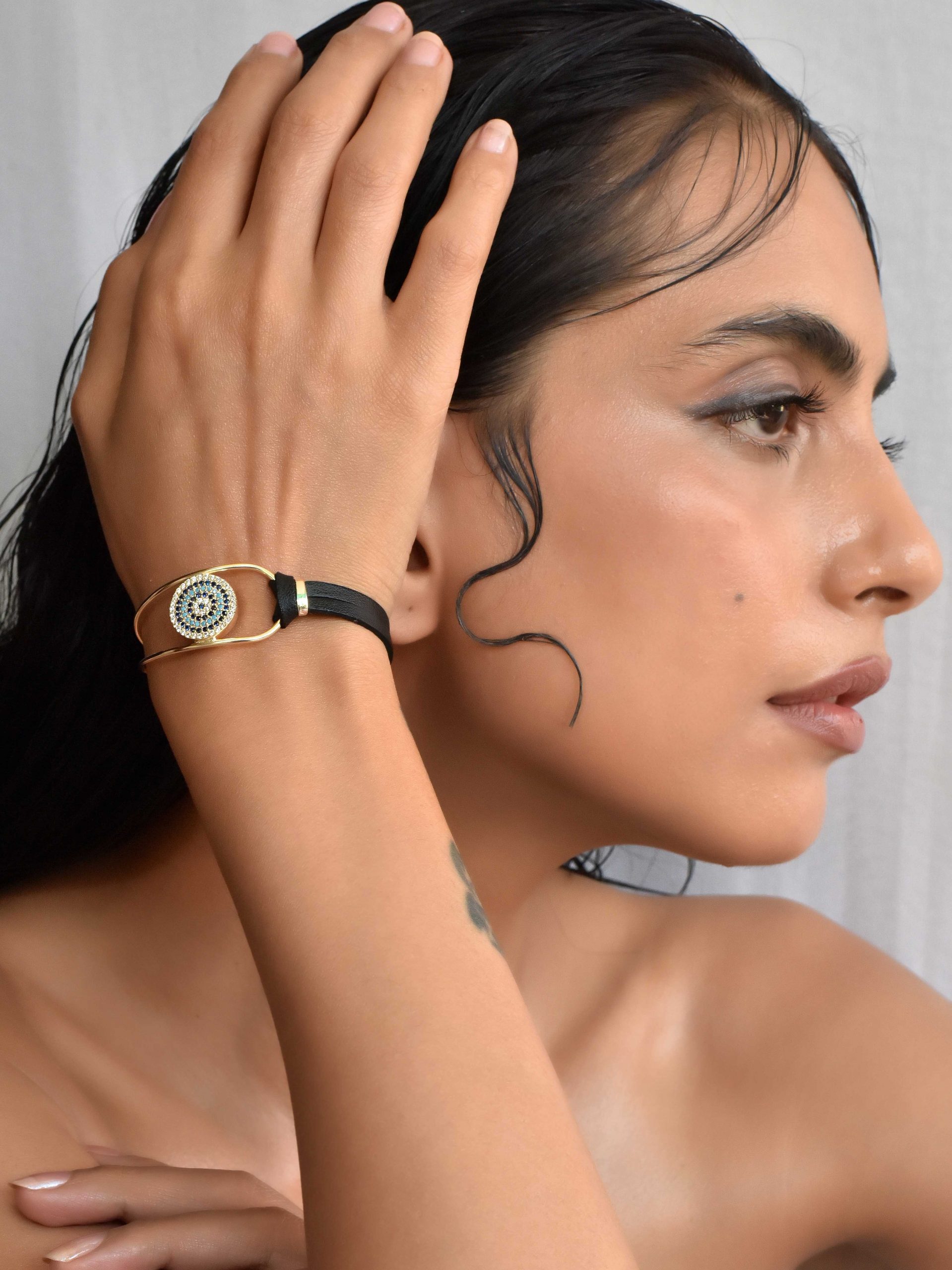 Black Leather Strap Eye Bracelet: Price: INR 999