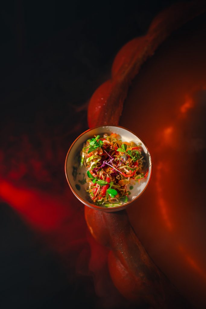 The food menu at Dali & Gala focuses on Burmese cuisine, developed by Chef Yong (of Sopo, Goa, a Burmese restaurant also owned by Siddharth and Vipin). The menu adapts Burmese dishes into a bar format, offering mostly cocktail-and-booze-friendly bites.Think, an interesting mix of grilled and fried Burmese-style dishes that are light on the palate, such as a Burmese-style pomelo salad served on house crackers, pickled tea leaf salad along with house crackers, mains such as, tea leaf rice, fried rice, Mala Shan Gaw noodles, and black sesame noodles.