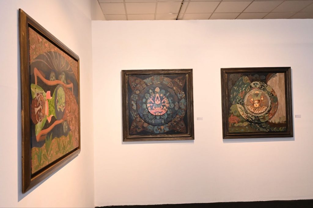 Tanushree Chakraborty’s body of work took inspiration from the cultural heritage of the Santhal tribe in Bengal, where storytelling traditions are passed down through both oral history and bodily expression. Her canvases, deeply detailed and symbolic, echoed the spirit of ancient narratives while bringing them into dialogue with the present. Through intricate motifs and bold reimaginings, her work created a space where memory and mythology intersected seamlessly.