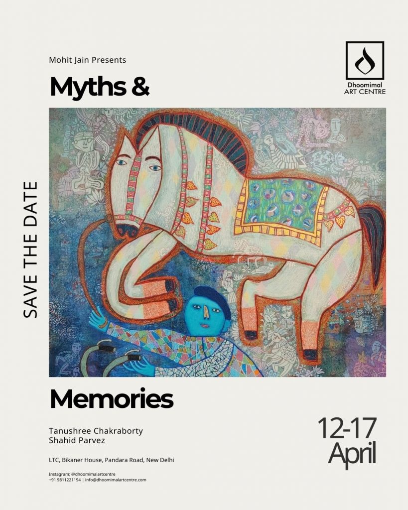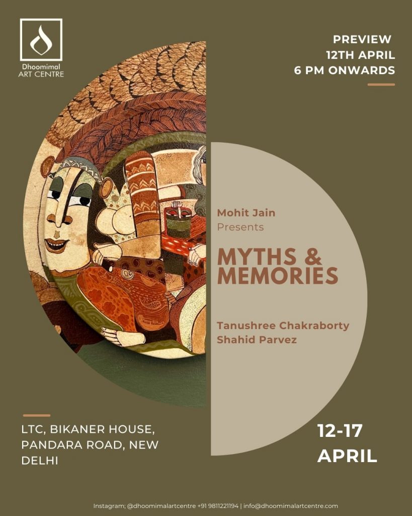 Dhoomimal Art Centre, one of India’s first private gallery, announces its upcoming exhibition, Myths and Memories, a compelling showcase featuring the works of Tanushree Chakraborty and Shahid Parvez. Exploring the intersection of traditional folk influencers and contemporary artistic expression, the 6-day exhibition opens to the public on April 12 at LTC, Bikaner House, and will be accessible till April 17. During this period, it aims to offer a striking visual dialogue between two distinct yet complementary styles as it beautifully merges the artistic sensibilities of the East and West.