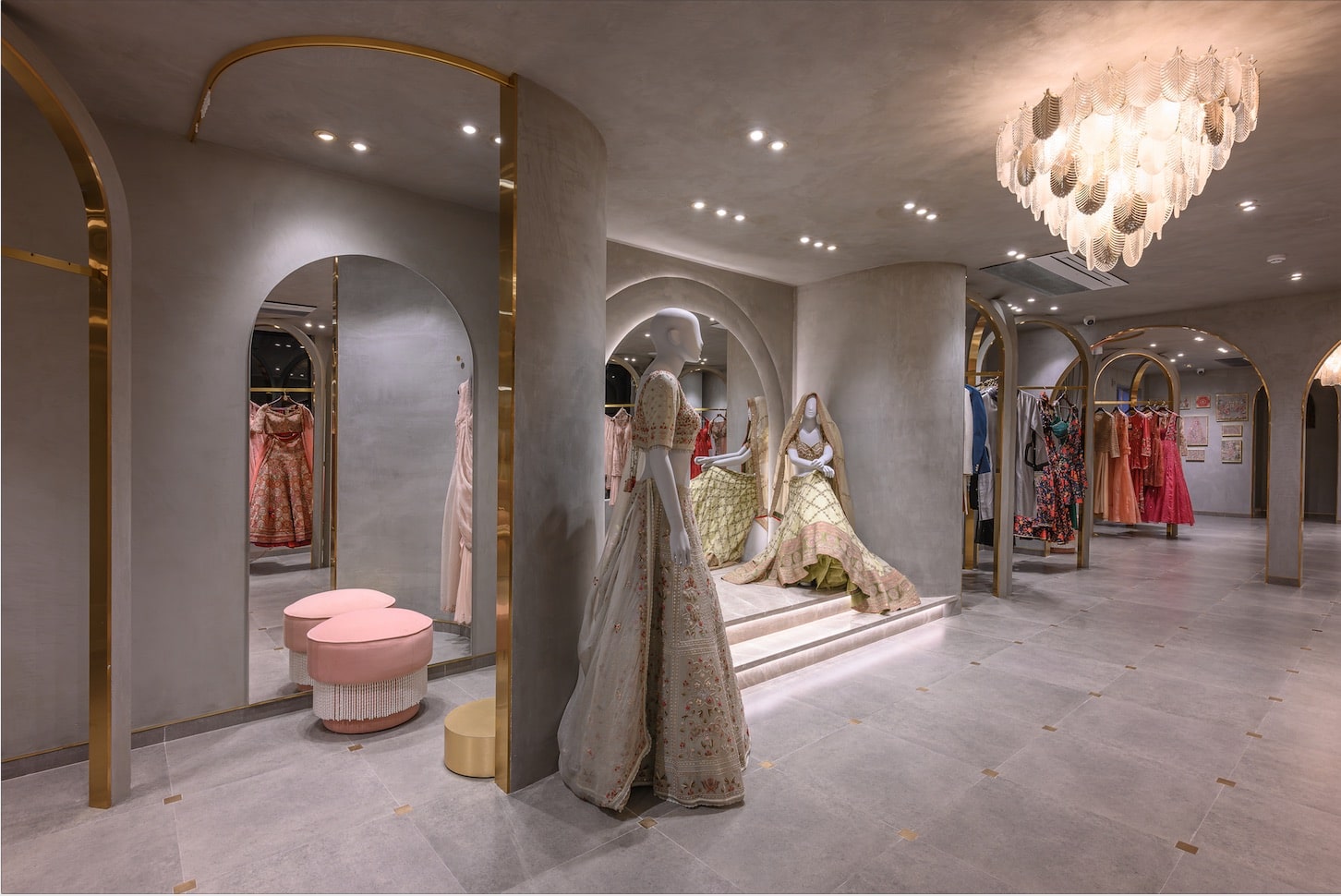 The use of soft arches, pastel colors, and intricate design elements within the store encapsulates the very essence of the Shasha Gaba brand. It’s not just a retail space; it’s an embodiment of style and sophistication. The deliberate choice of arches as a design motif creates a sense of continuity and coherence throughout the store.