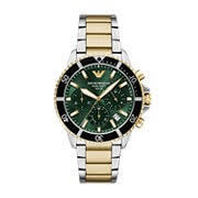 Emporio Armani’s 43.5mm World Explorer chronograph features a green sunray dial protected by sapphire crystal and paired with a two-tone stainless steel bracelet. Solar-powered movement ensures reliable performance without frequent battery changes, running up to five months on a full charge. A perfect statement piece for holiday adventures and festive celebrations.