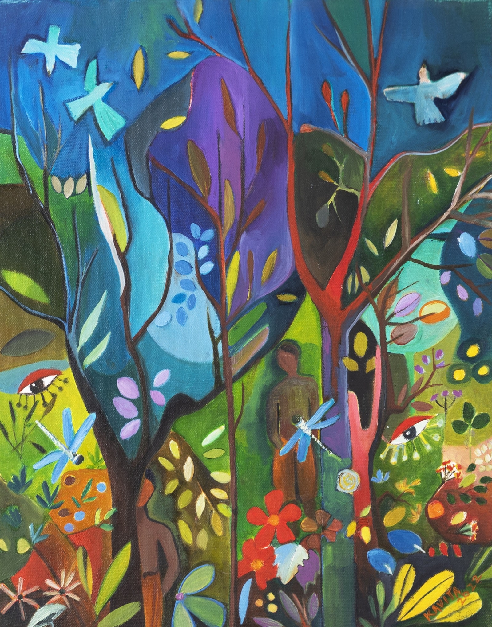It is not often that the singularity of art also speaks a language of concern and care, that the enchantment of the forest evokes a nostalgia for harmony spurring the viewer to a deeper awareness. This is the uniqueness of Kavita Chopra Dikshit’s solo exhibition, Enchanted Forests curated by Jyoti A Kathpalia.
