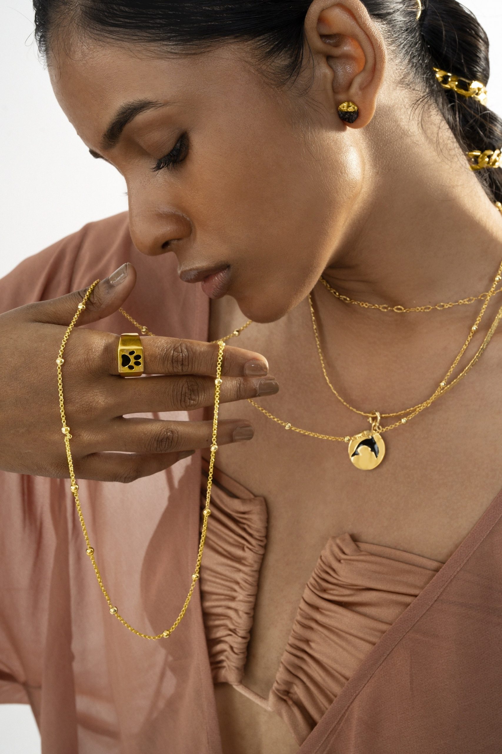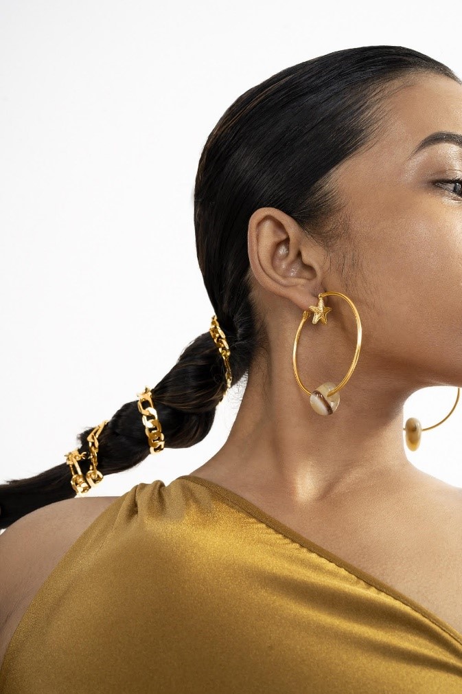 Up your beach to shore style game with Lion’s Mane ear cuffs, Beluga series (hoops, huggies, and bangles), reversible coin charm pendant necklaces, and waist chains that are a perfect accessory for swimsuits but can be styled as necklaces, bracelets or anklets, and stackable rings and bangles.