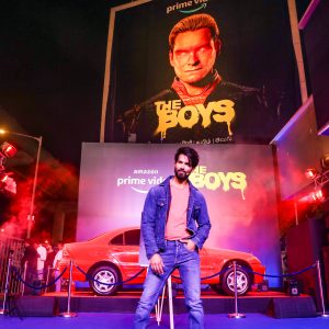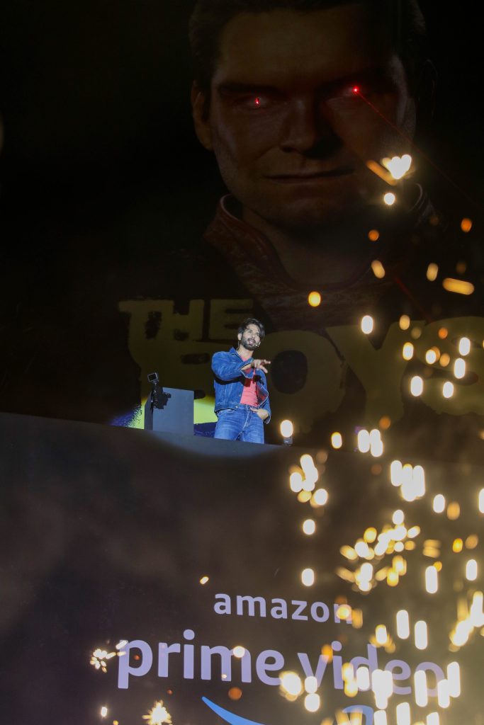 Shahid made a grand entry to the jaw-dropping b-boying moves of Kings United dance group performing to a foot-tapping, high-energy song. The daredevil actor then unveiled a curtained hoarding through an exhilarating stunt. The billboard had the image of the lead Supe from The Seven – Homelander, who shot out a laser targeting a nearby car with his deadly vision.