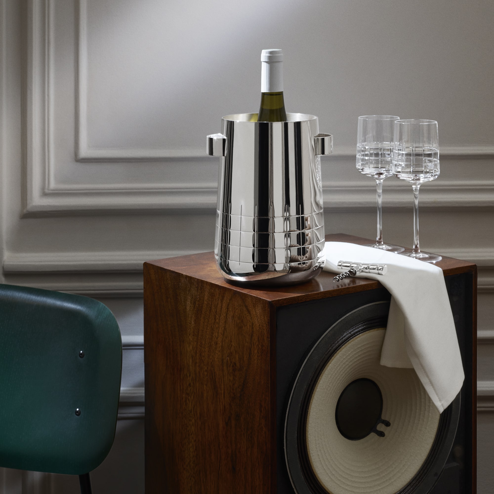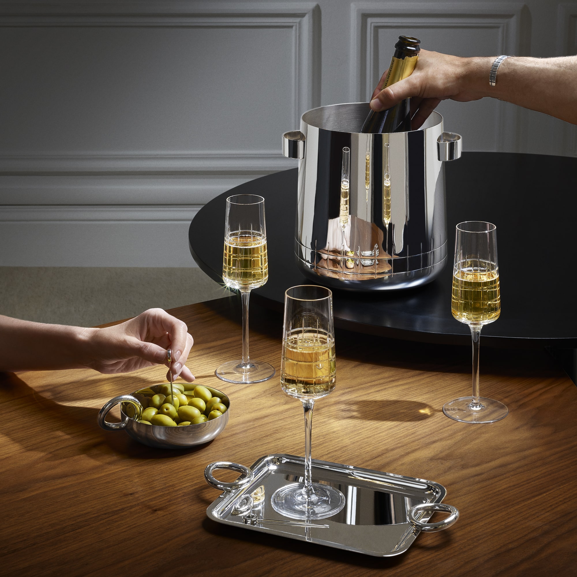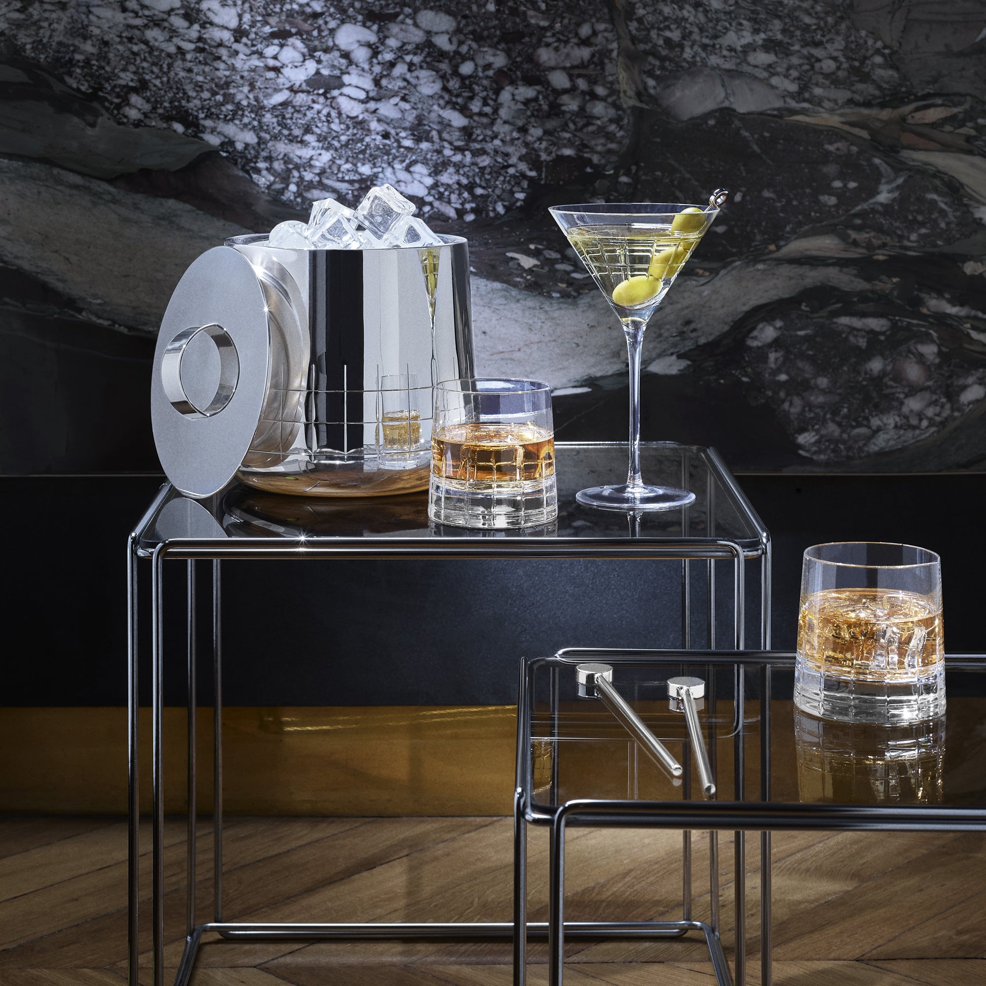 Created in 2015, Graphik’s design entails racy, powerful and modern lines etched onto glass and sterling silver pieces. The collection is created with vigorous lines It comes in a wide range of crystalware for the bar such as vodka glasses, martini glasses, double old fashioned, and champagne flutes. There also lies in Graphik the essential accessories for the perfect cocktail hour with an ice bucket, wine and whiskey carafe.