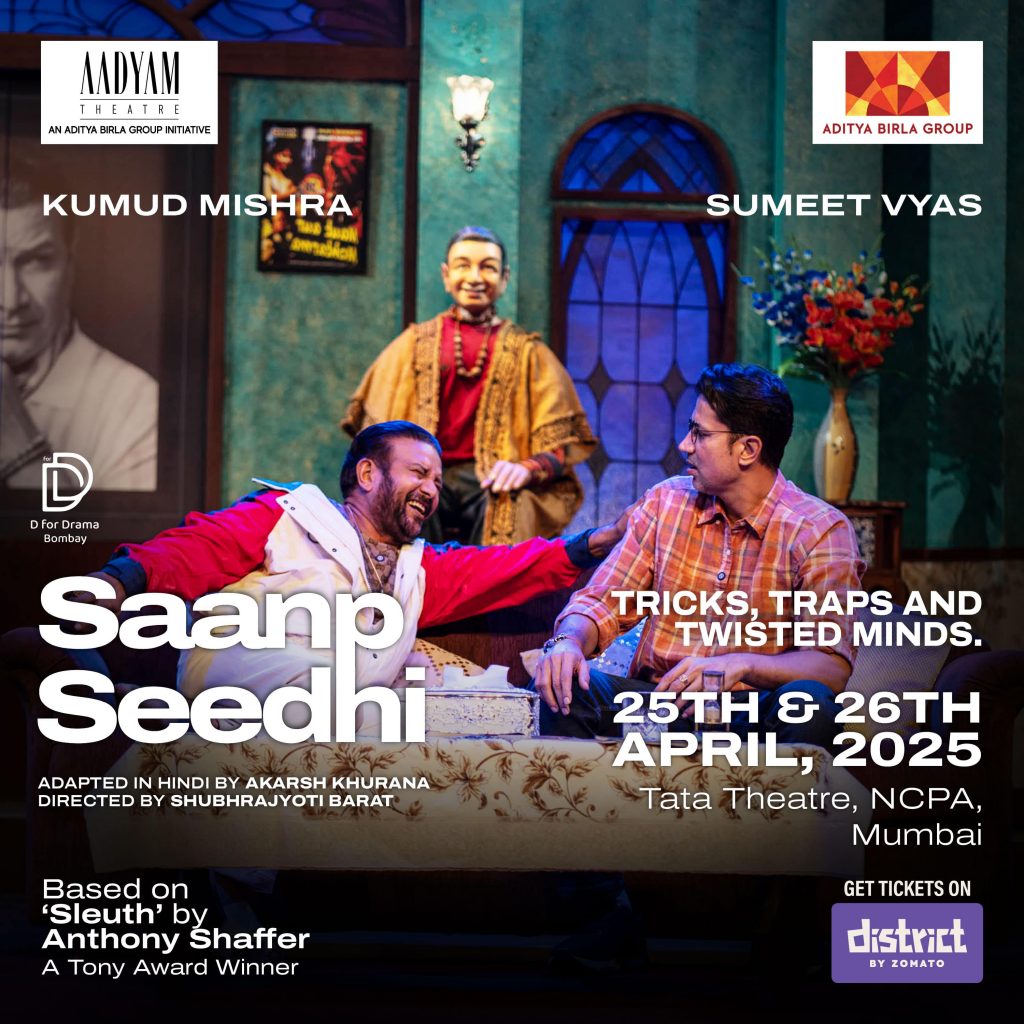 The play is an adaptation of Anthony Shaffer’s skillfully crafted thriller Sleuth. The play already saw a thundering response from the audience during its March 2025 run in Mumbai and Delhi. Now, Saanp Seedhi will have a third run in Mumbai on April 25th and 26th, 2025 at the Tata Theatre, NCPA. Here are five reasons to grab the opportunity to witness the world of this edge-of-the-seat thriller unfold!