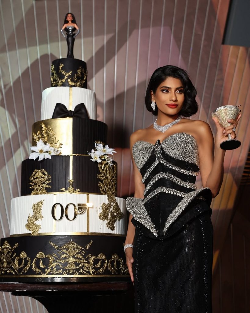 For her James Bond-themed birthday bash, Farhana’s choice of a martini-shaped bag was
