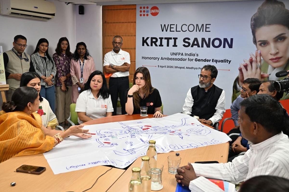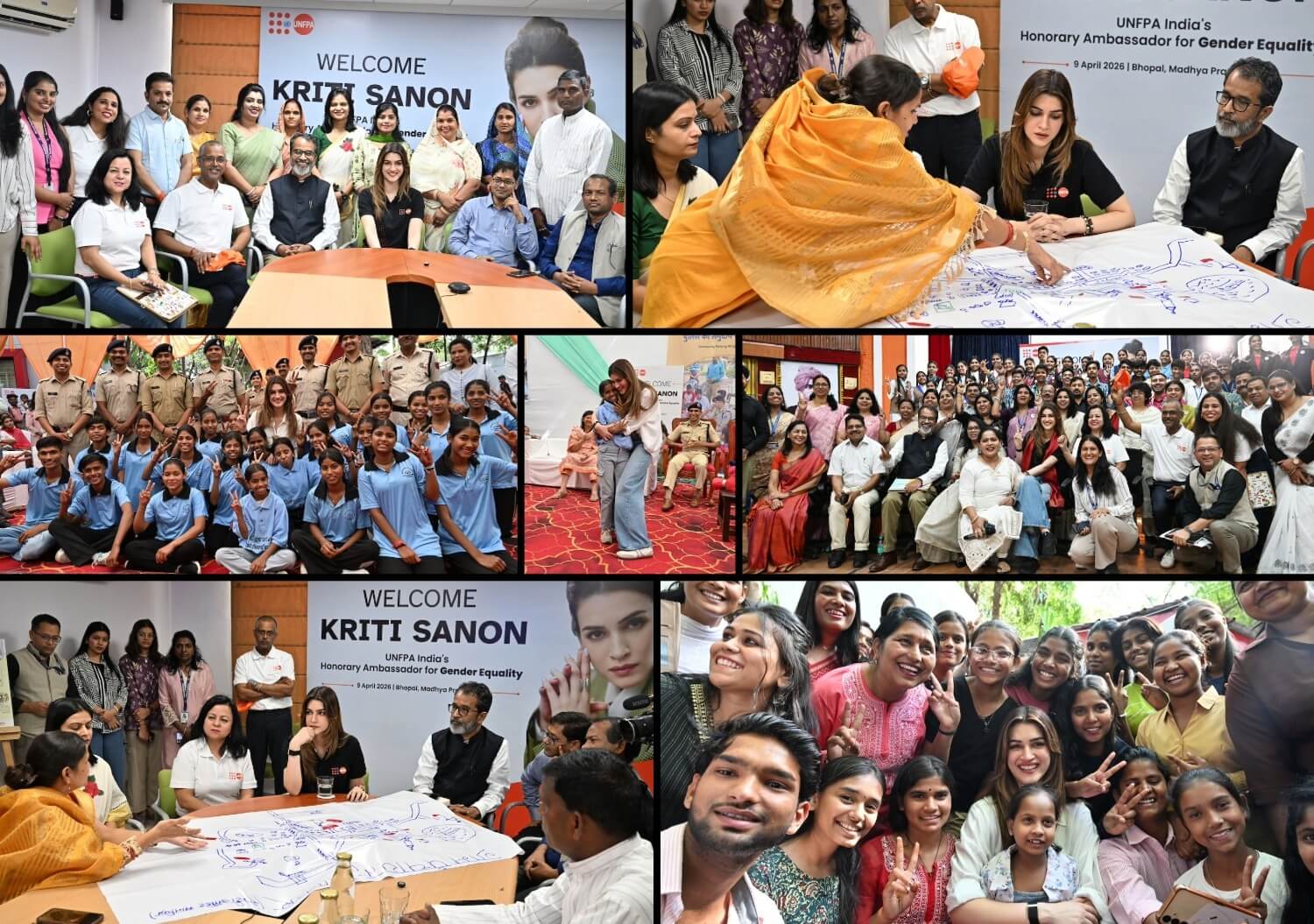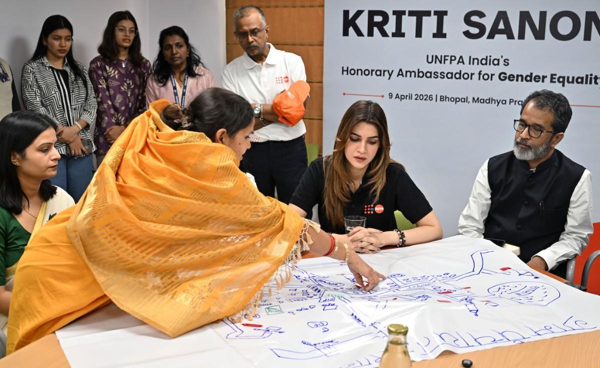Bhopal, 9 April 2026 —Madhya Pradesh is demonstrating what it looks like when gender equality moves from policy to practice, embedded in school curricula, in the functioning of elected village bodies, and in the culture of law enforcement. Today, UNFPA India Honorary Ambassador for Gender Equality and acclaimed actor, producer and entrepreneur Kriti Sanon undertook a day-long field mission to Bhopal, interacting face to face with students, elected women representatives, and police officers.
