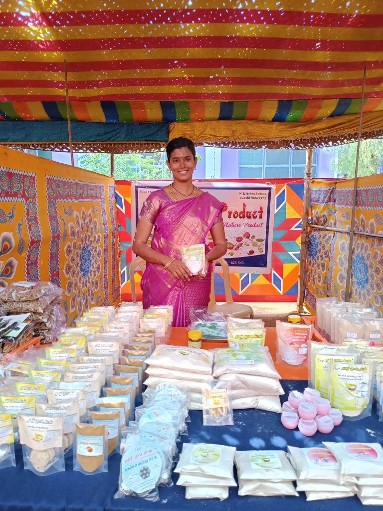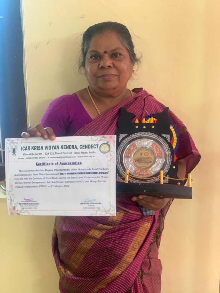 At 62, P. Regina from Tamil Nadu’s Theni district is spearheading a movement of empowerment within her community. As the leader of the “Vahin” self-help group, made up of 12 women, she has transformed lives through the production of plant-based, organic products such as Carrot Malt, Beetroot Malt, and Amla Candy. Under Regina’s leadership, the group now earns a collective monthly income of INR 30,000, not only improving their financial standing but also creating a strong sisterhood driven by shared dreams and mutual support.