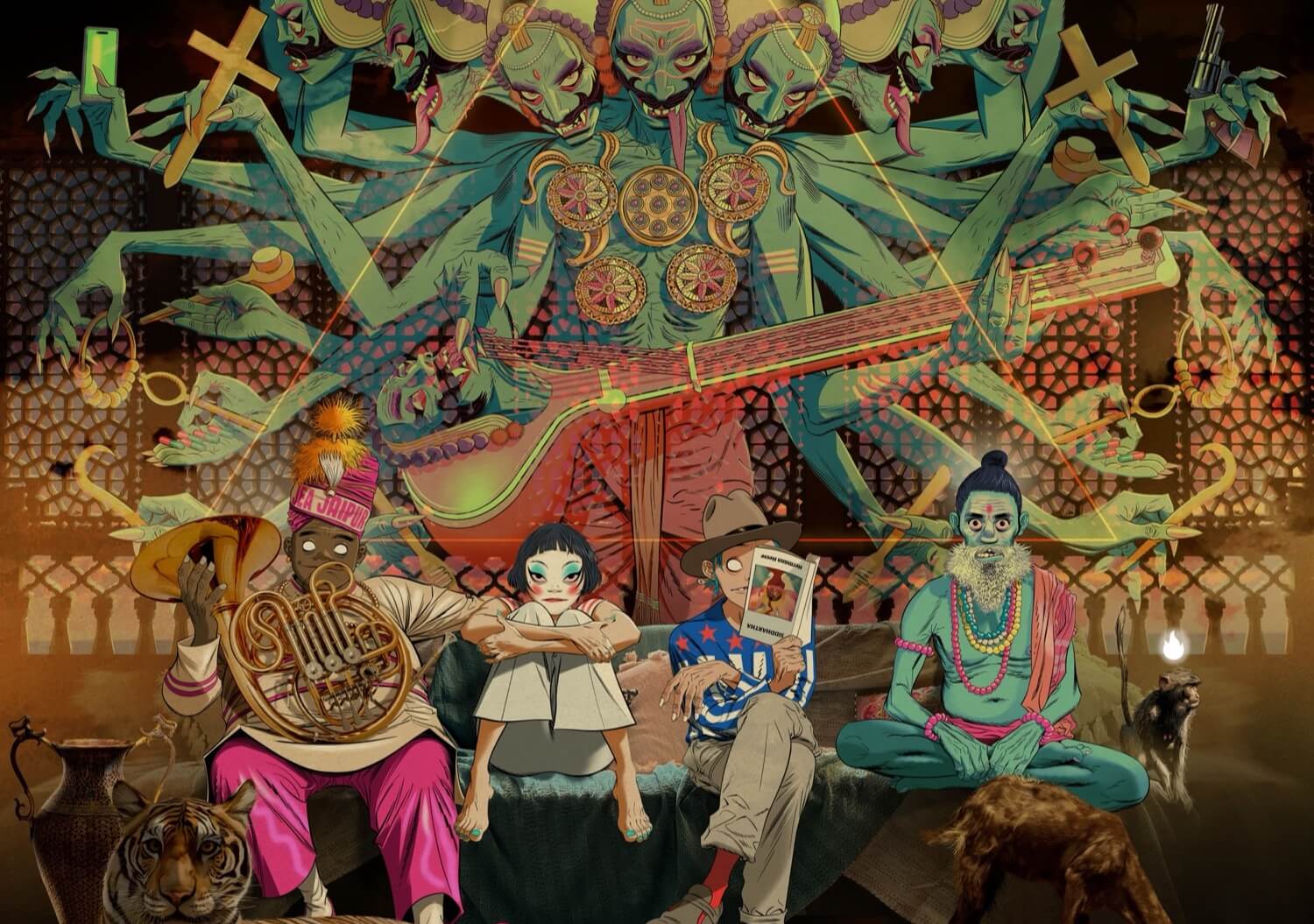 The artwork for The Mountain sees visual artist Jamie Hewlett’s distinctive, yet ever-evolving, style illustrate the world of Gorillaz with detailed and beautiful intricacy across a series of hand-drawn images which capture Murdoc, Noodle, Russel and 2D’s time in India working on the new album, available both as a book and as a collection of 12×12 prints.