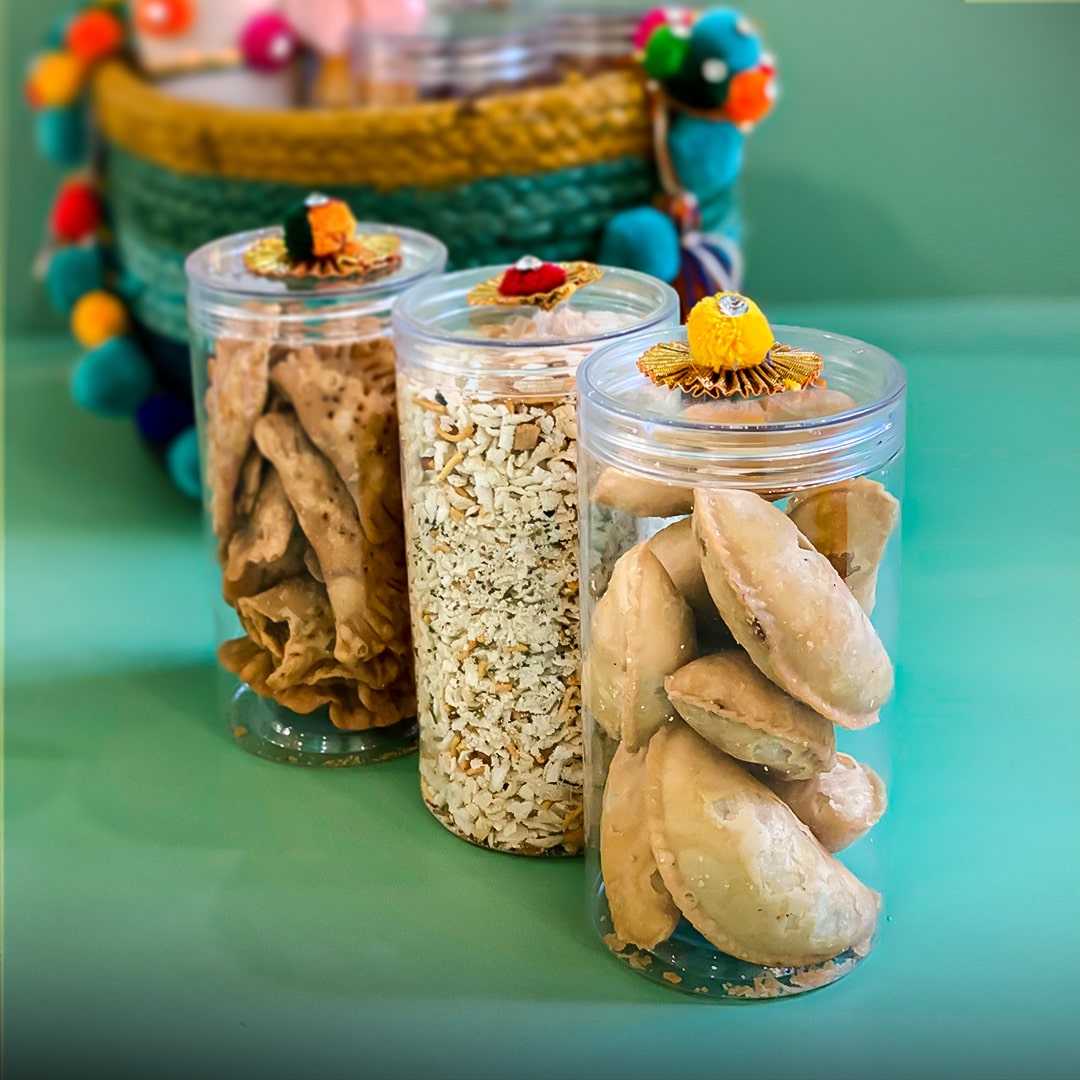 The collection consists of several assortments, Dhanak hamper, Sharbat Flask, The Holi Trio hamper, shell-shaped pottery collection, all filled with super delightful savories which will definitely stand apart this season.
