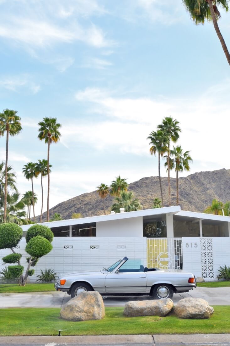 MoSa- Another striking mid-century modern design in the area is the Modern Sanctuary house, a ranch-style bungalow featuring cooling white bricks and a long, low roofline set in the backdrop of a desert landscape.