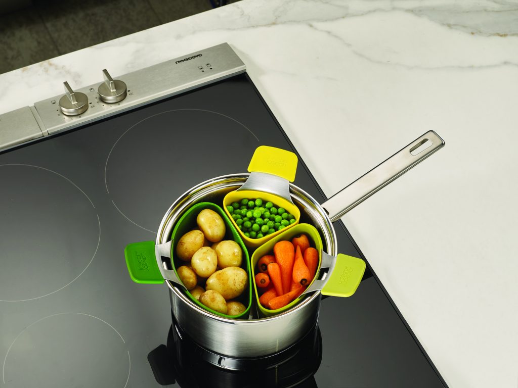 Steaming is another simple and healthy cooking technique that can be used to prepare a variety of meals. By exposing food to steam, we can retain its natural flavors, textures, and nutrients. Studies have found that steaming is considered to be a healthier option than boiling, as it does not immerse the food in water, reducing the loss of valuable vitamins and minerals. When steaming, most small in-pan steamers only provide a single compartment for cooking food my favourite is the Joseph Joseph Nest Steam 3-piece Steaming Pod Set as it has three individual pods that are ideal for small portions of vegetables and other foods. It comes with an integrated hook that suspends it safely from the edge of your pan.