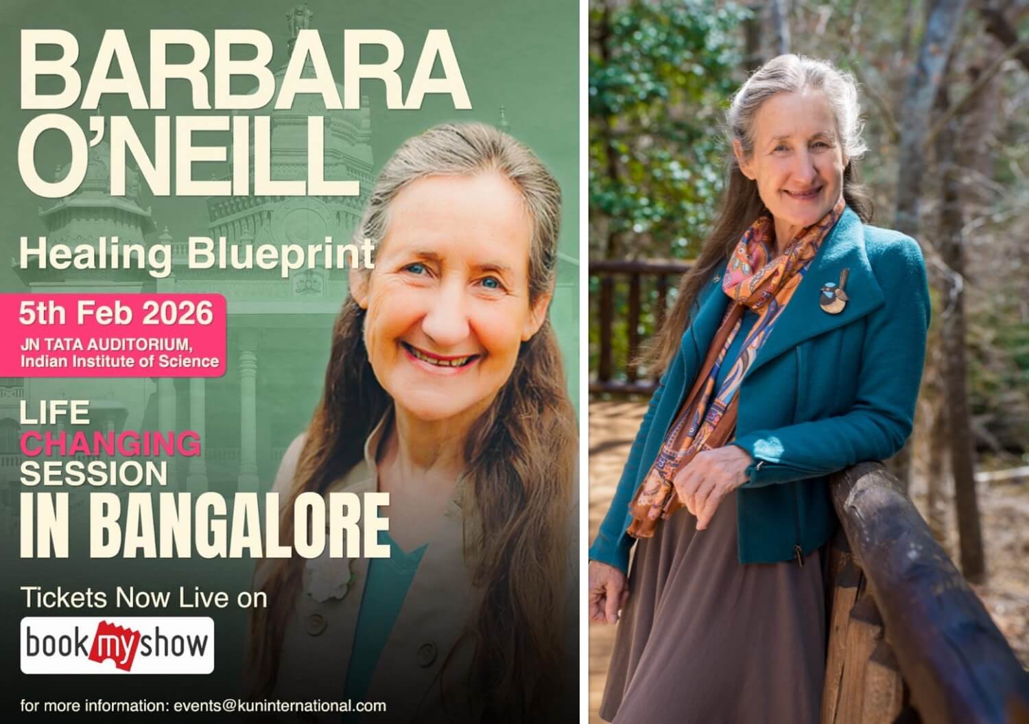Renowned global health educator and lifestyle expert Barbara O’Neill is set to visit Bangalore for the first time for a one-day immersive wellness session titled Healing Blueprint, scheduled for 5 February 2026 at the JN Tata Auditorium, Indian Institute of Science.