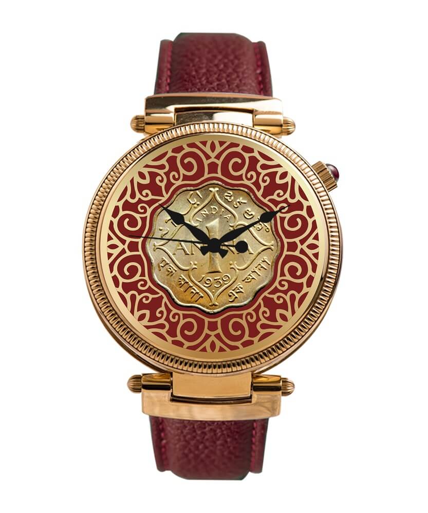 1. Our newest creation, the 40 mm “Filigree watch” is unique in how a 1938 – 1947 King George VI 1 anna coin placed at the center to form the dial is surrounded by intricate lace-like filigree work, the dodecagon curves representing the twelve hours of the timepiece.