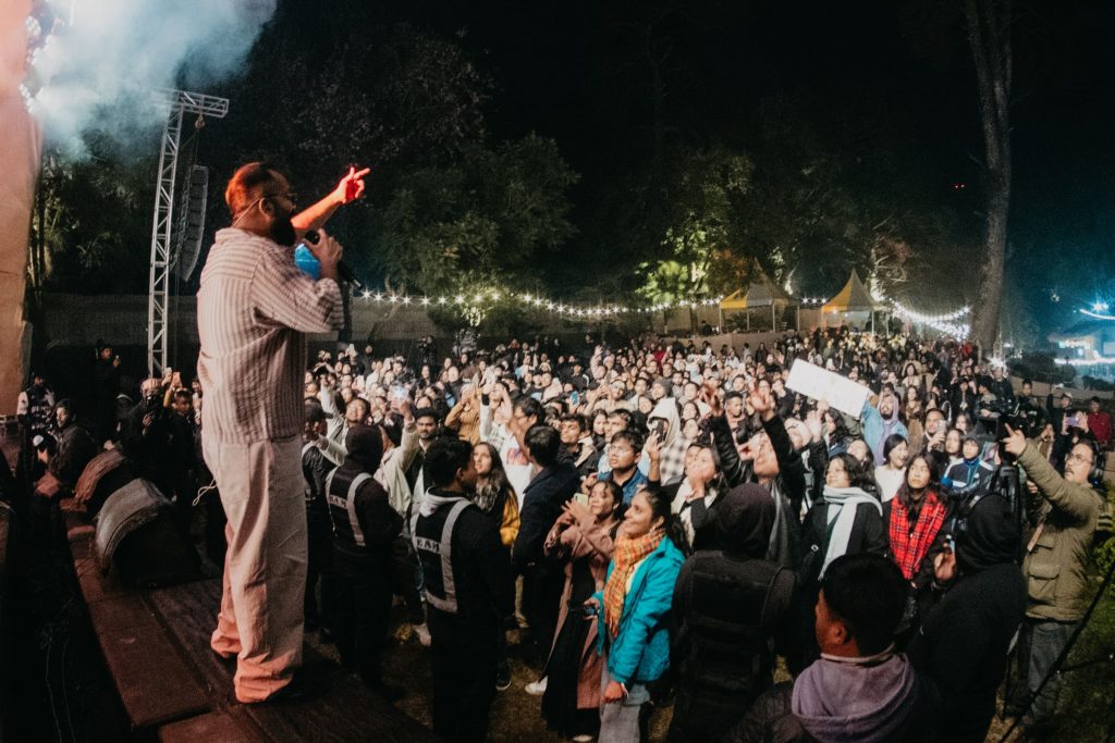The night took an electrifying turn with hip-hop & R&B artist Meba Ofilia, whose energetic performance had everyone grooving. Shillong’s iconic hip-hop crew, Khasi Bloodz, followed with a powerful set, their bilingual rap verses in English and Khasi resonating deeply for their powerful point of view, showcasing the region’s unique fusion of traditional storytelling and contemporary beats.